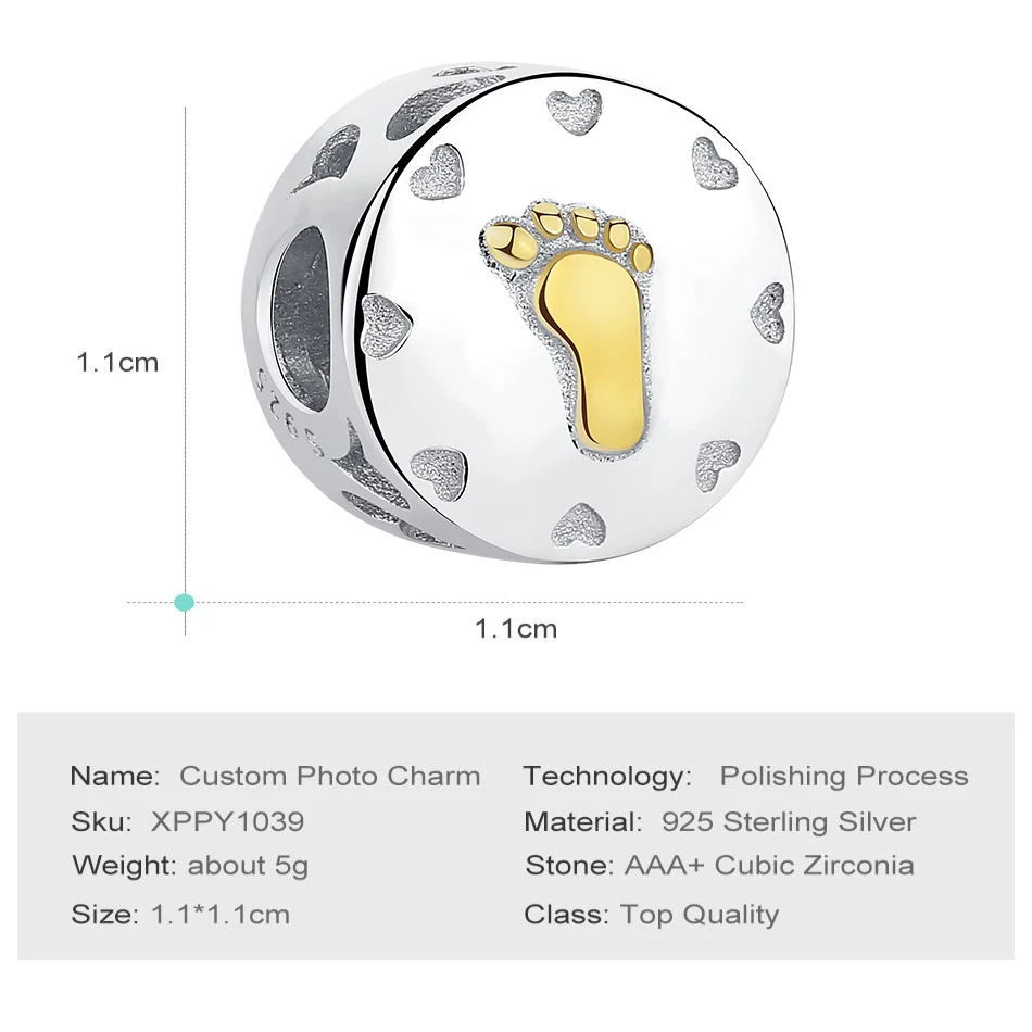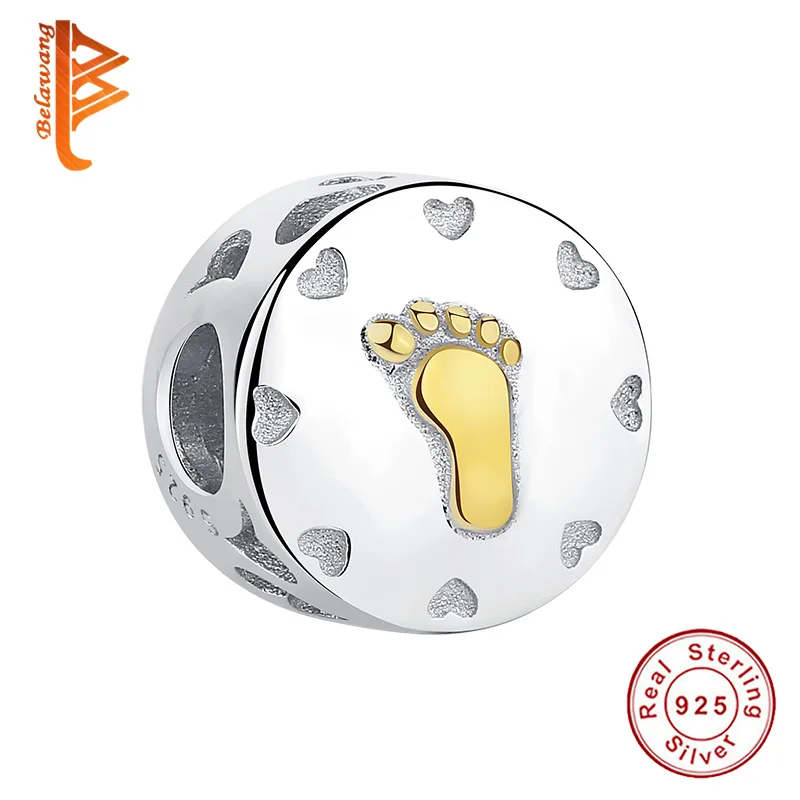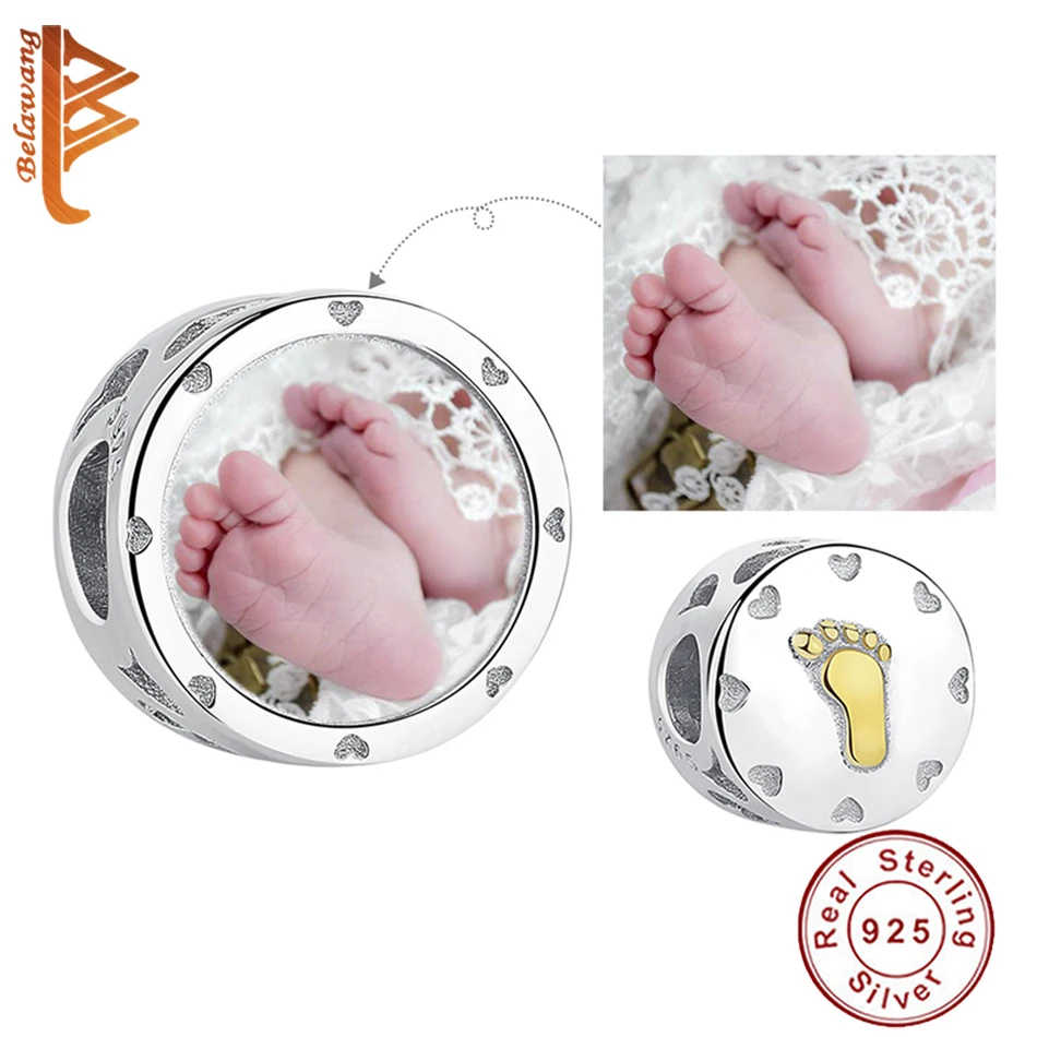 BELAWANG Аутентичные 925 стерлингового серебра рождения средства ухода за кожей стоп сердцем на заказ Фото Подвески бусины для браслетов и ожерелий DIY, иных персонализированные ювелирные изделия