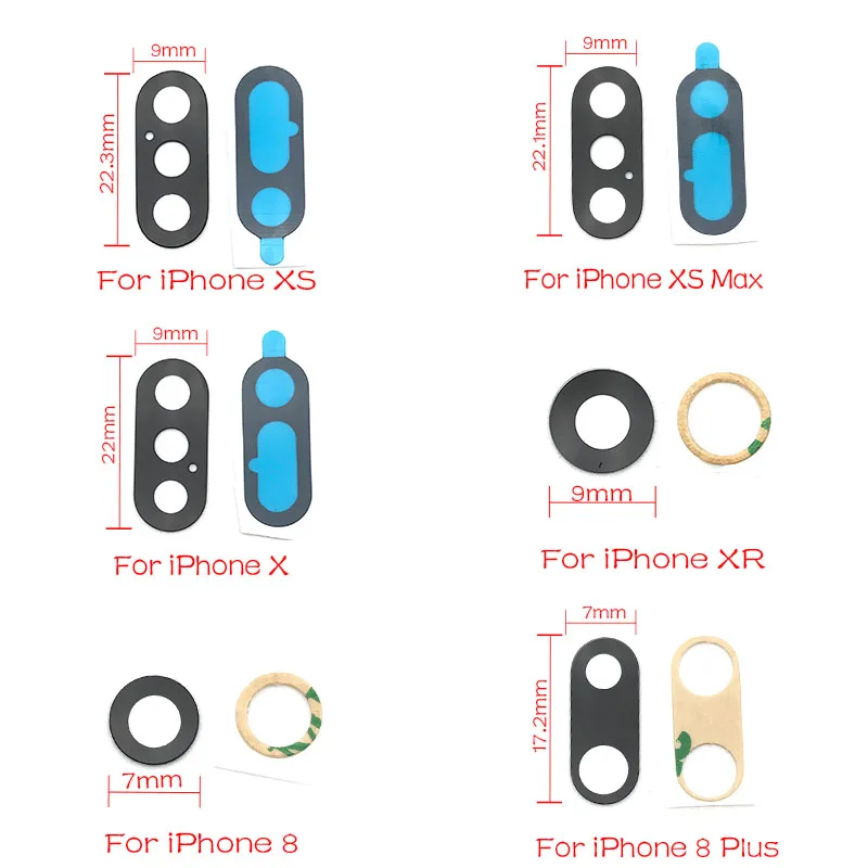 100 шт., стеклянный объектив задней камеры для Iphone 6 7 8 Plus X XR XS 11 12 Pro Max, стеклянный объектив мини-камеры с заменой наклейки