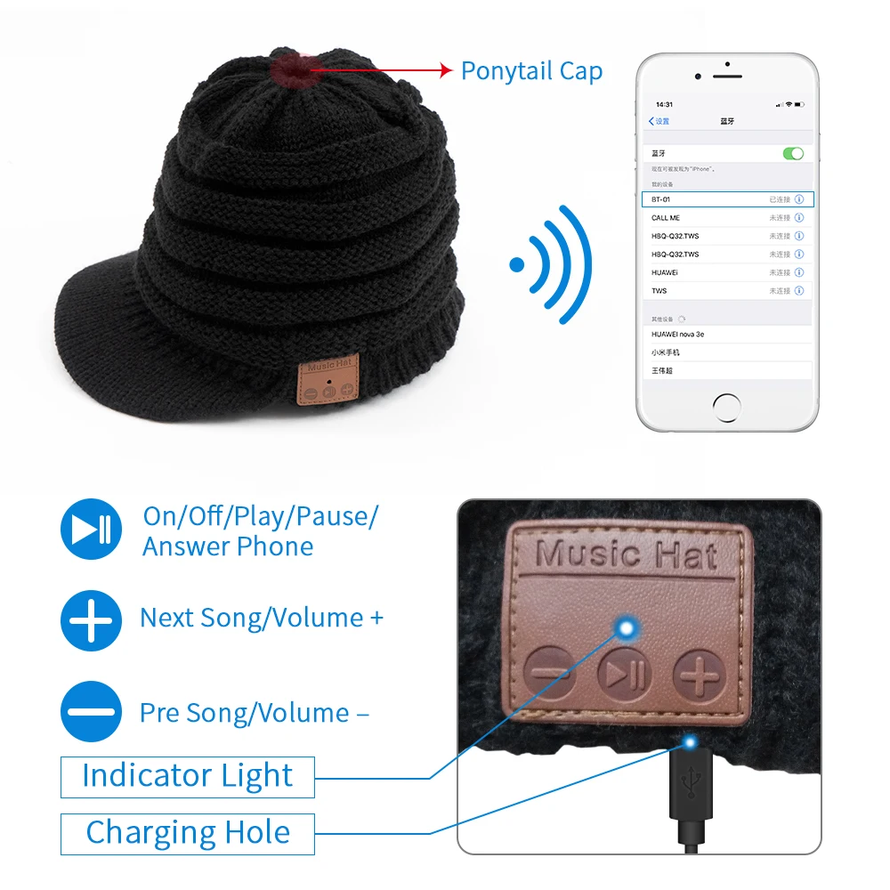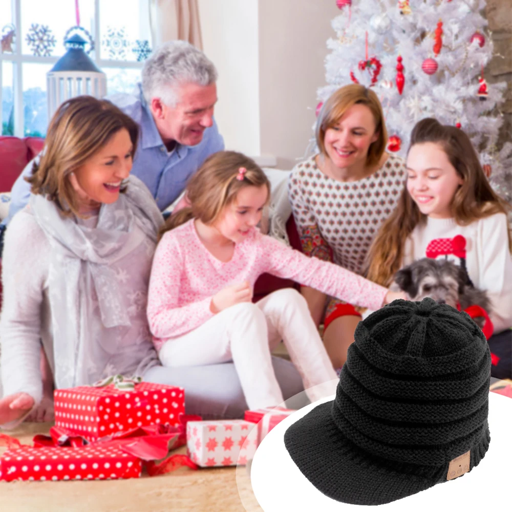 Шапка-бини женская вязаная с Bluetooth-совместимостью, наушники, Беспроводные стереонаушники для прослушивания музыки, зимняя шапка для бега на улице
