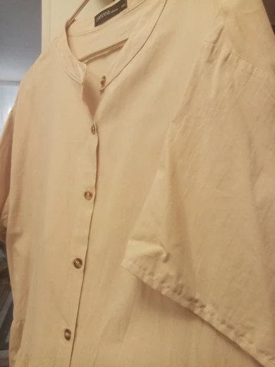 Он прибыл в течение 10 дней! Я 58 кг, 163 см. Я получил размер M. Я знаю, что стиль свободный, но для меня он был слишком большим, я бы, вероятно, пришила талию. Нужно было взять размер S. Материал удобный, не зуд. Это та рубашка, которую необходимо прогладить перед использованием, потому что морщины делают ее ужасно. Кроме того, цвет был верным.