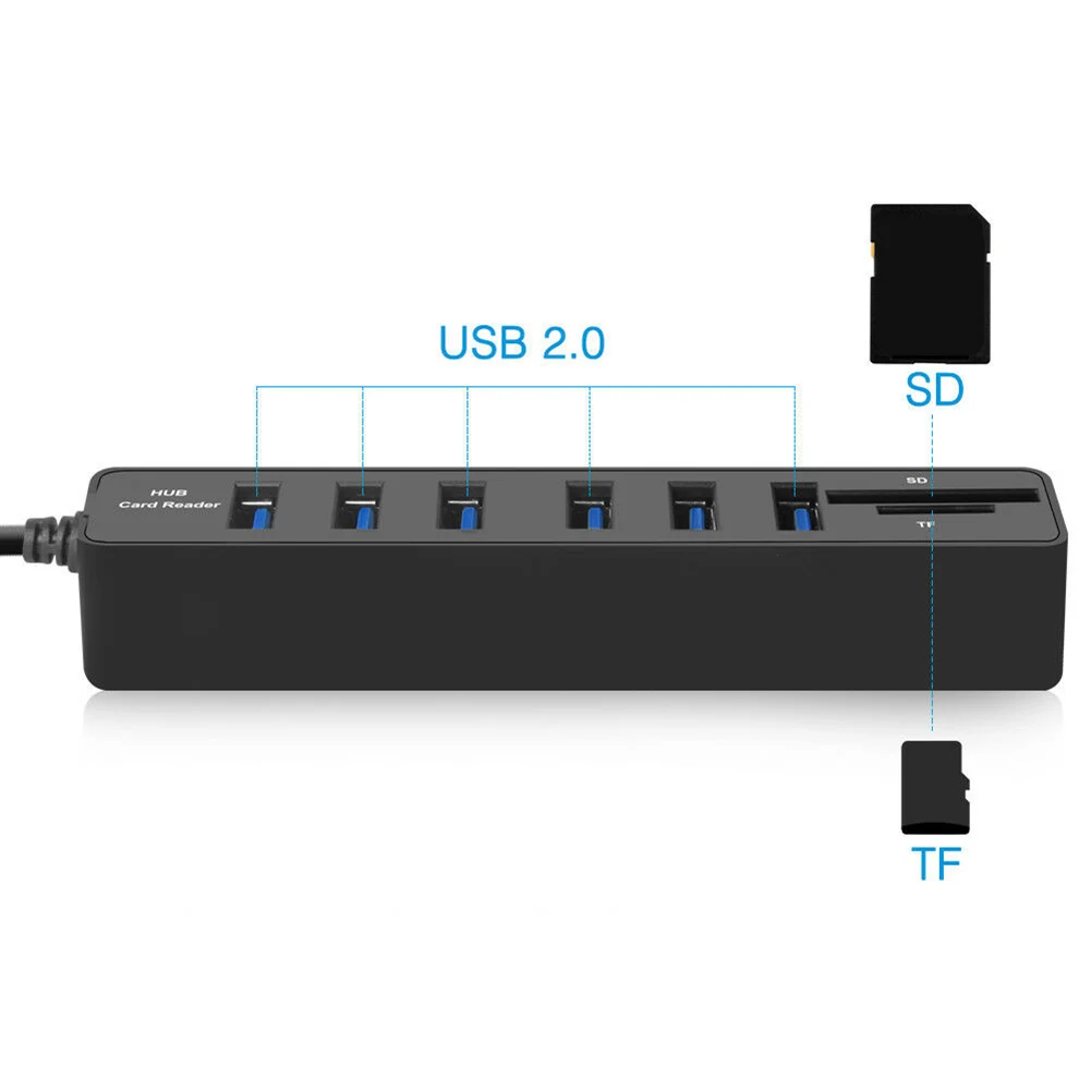 6 портов USB 2,0 SD/TF кардридер концентратор переходник разветвитель комбо для компьютера ноутбука