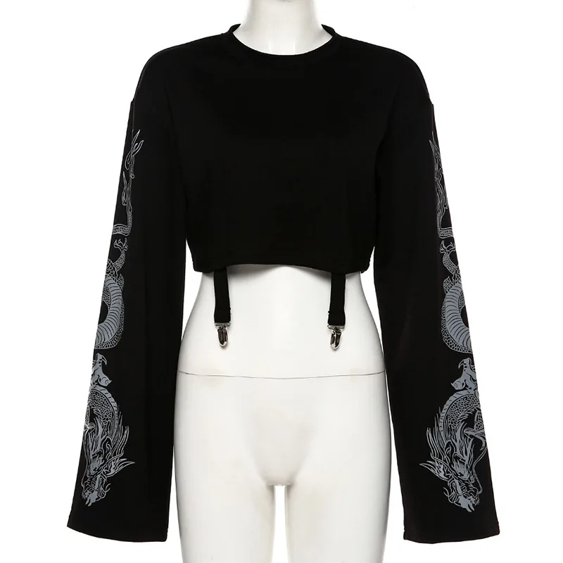Женский Укороченный свитшот InsGoth, в готическом стиле, с принтом дракона, в стиле Харадзюку