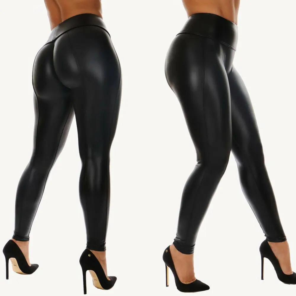 Женские леггинсы из искусственной кожи с высокой талией для фитнеса