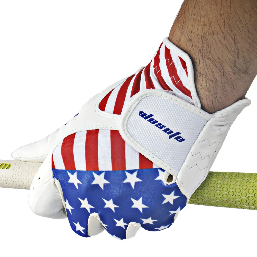 Перчатки для гольфа мужские с левым американским флагом Cabretta кожаные мягкие дышащие уличные спортивные перчатки Бесплатная доставка