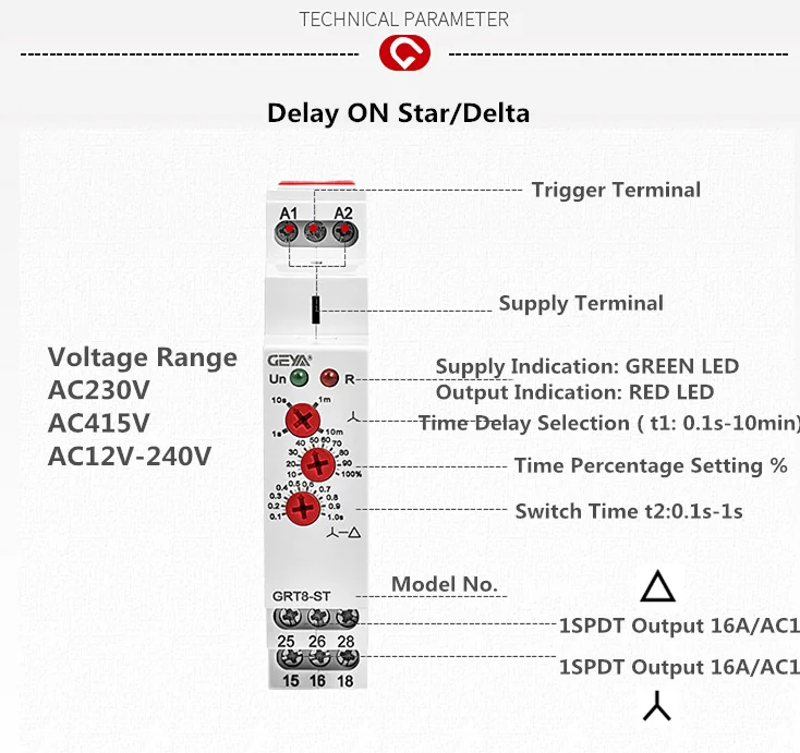 GEYA GRT8-ST задержка на перепада звезды таймер реле устройств плавного пуска AC230V 415 В переменного токаDC12V-240V Delta реле стартера мотора