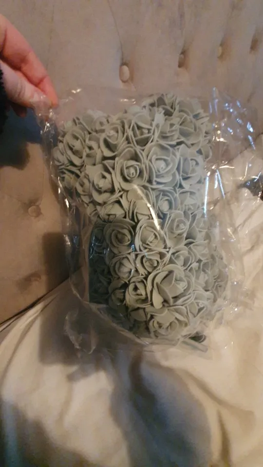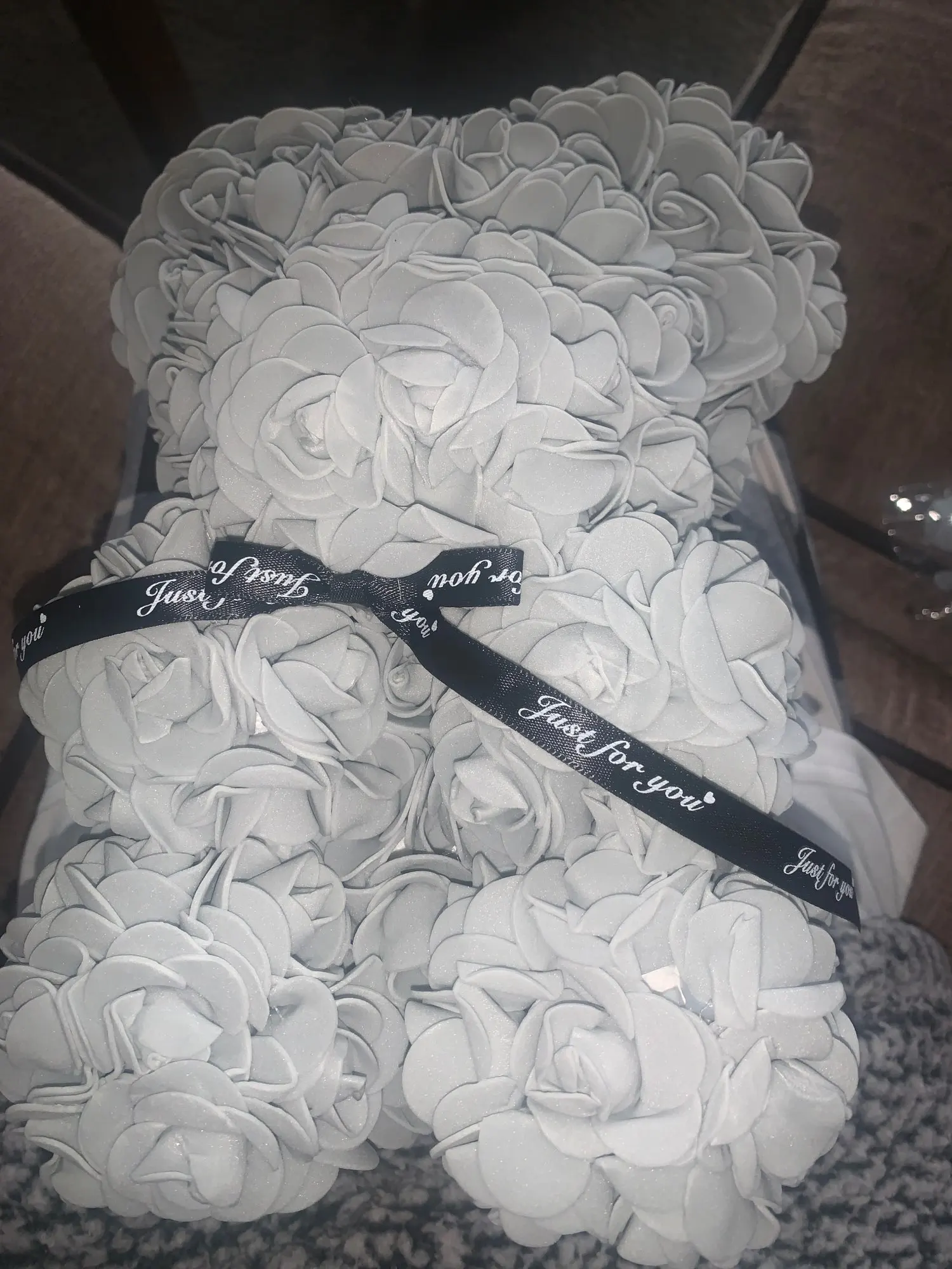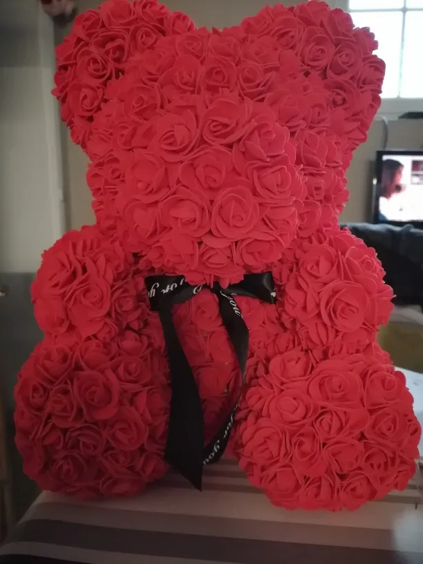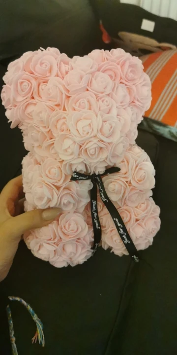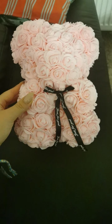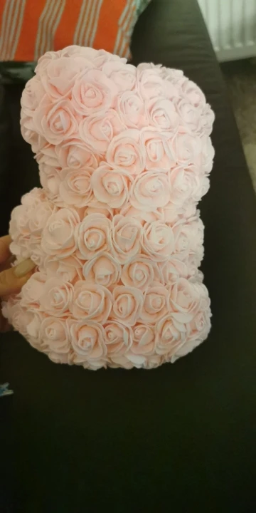 На самом деле, я был очень доволен продуктом, который я думал, что это продукт «сделай сам», и мне нужно было клеить все бутоны роз на медведя, но они были там уже спасибо хорошо, и я знаю, что моя мама будет действительно наслаждаться этим подарком на День святого Валентина, поэтому спасибо.