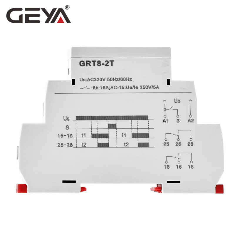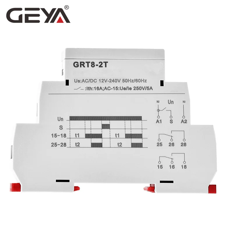 GEYA GRT8-2T реле с двойной задержкой таймера AC230V или ACDC12V-240V DPDT реле типа Din-рейка реле с задержкой времени