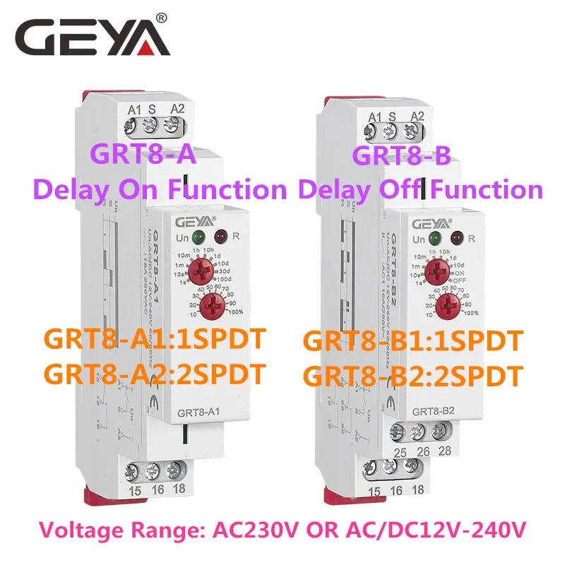 GEYA GRT8-B задержка выключения реле времени 16A AC230V или переменного токаDC12-240V Din Rail 12V реле задержки времени