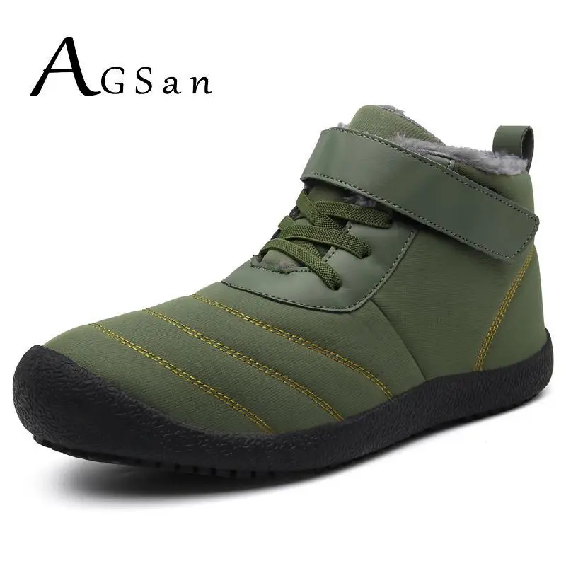 AGSanтеплые зимние ботинки мужские Ботильоны водонепроницаемая обувь для влюбленных пар размера плюс 35-48 плюшевые ботильоны зеленого цвета