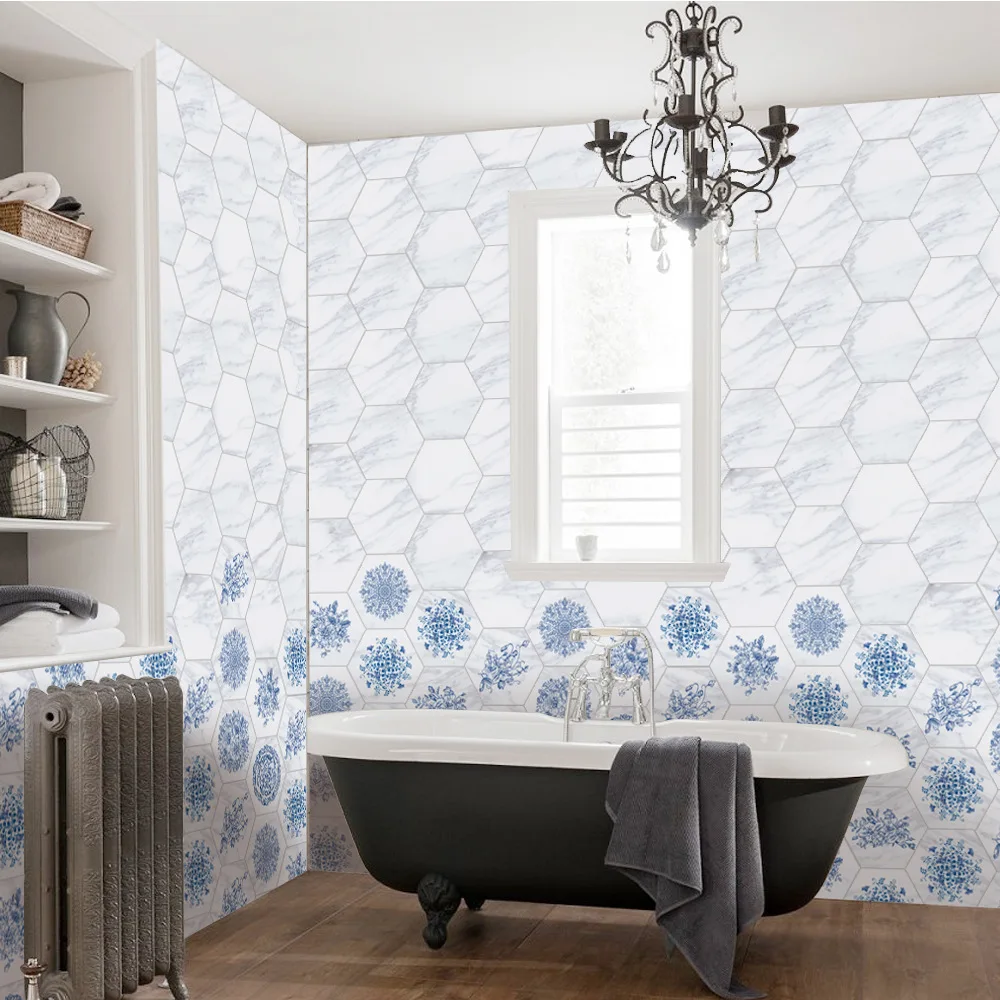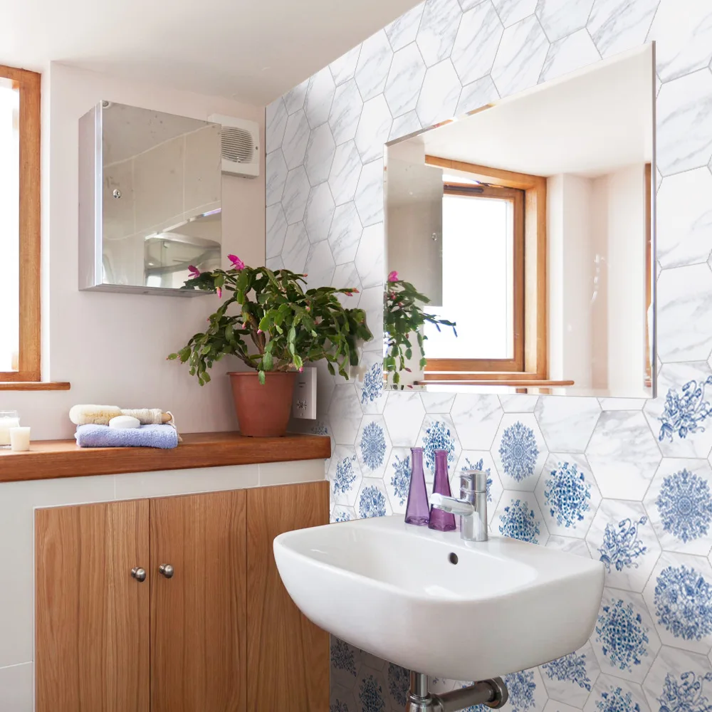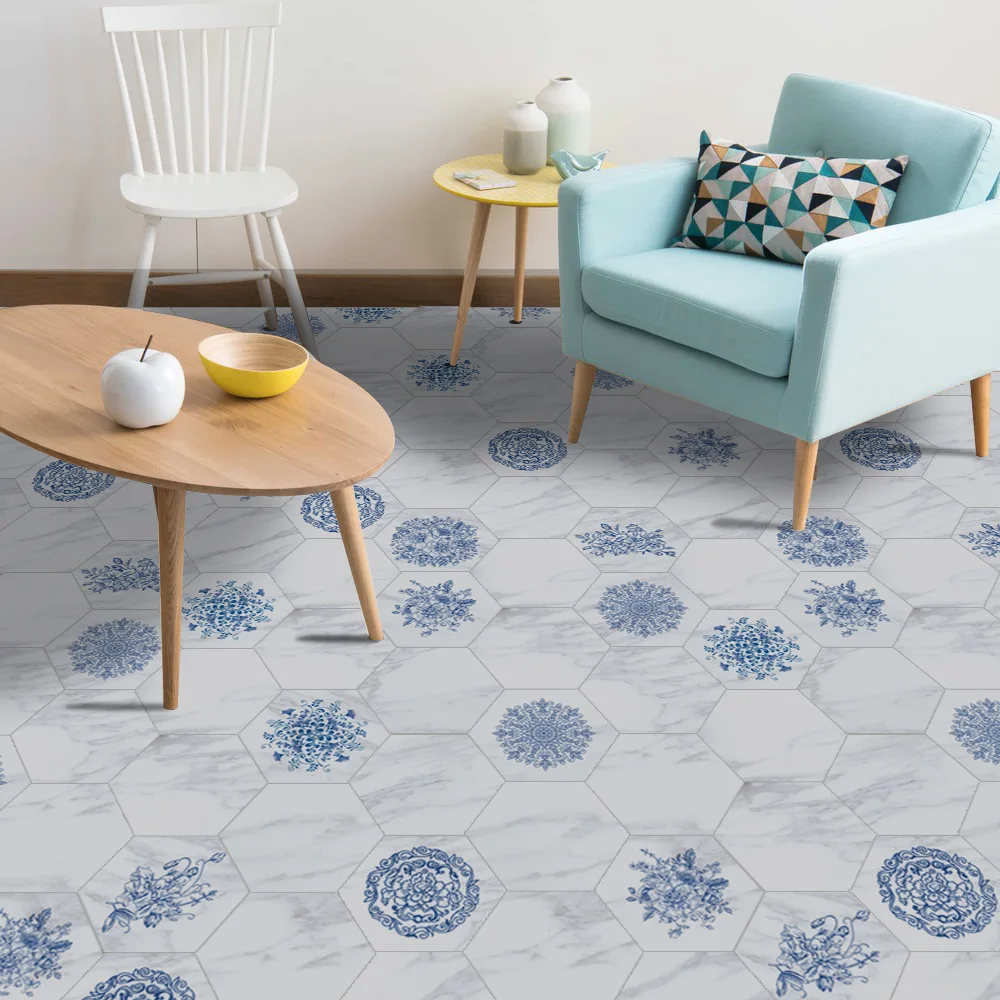 Настенная напольная плитка Funlife в китайском стиле, сине-белая фарфоровая наклейка для домашнего искусства, нескользящий водонепроницаемый декор для кухни и ванной комнаты