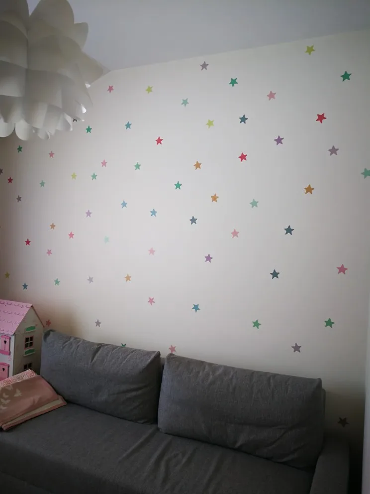 Me gustan mucho las pegatinas, se pegan muy bien y queda preciosas, son de la calidad del Leroy Merlin, incluso diría que tienen algunas pegatinas iguales. Eso sí para llenar una pared entera hemos tenido que comprar ya 11 paquetes.