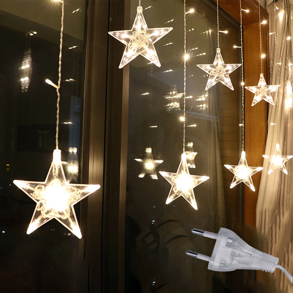 Рождественская светодиодная гирлянда со звездами, гирлянда-занавеск...