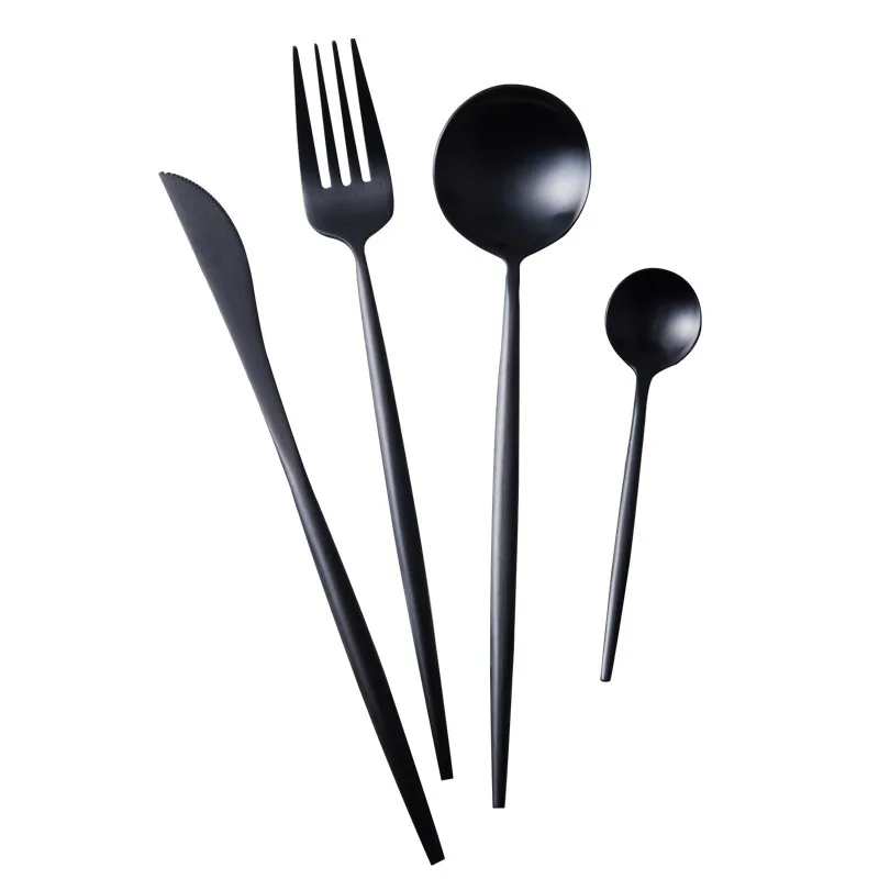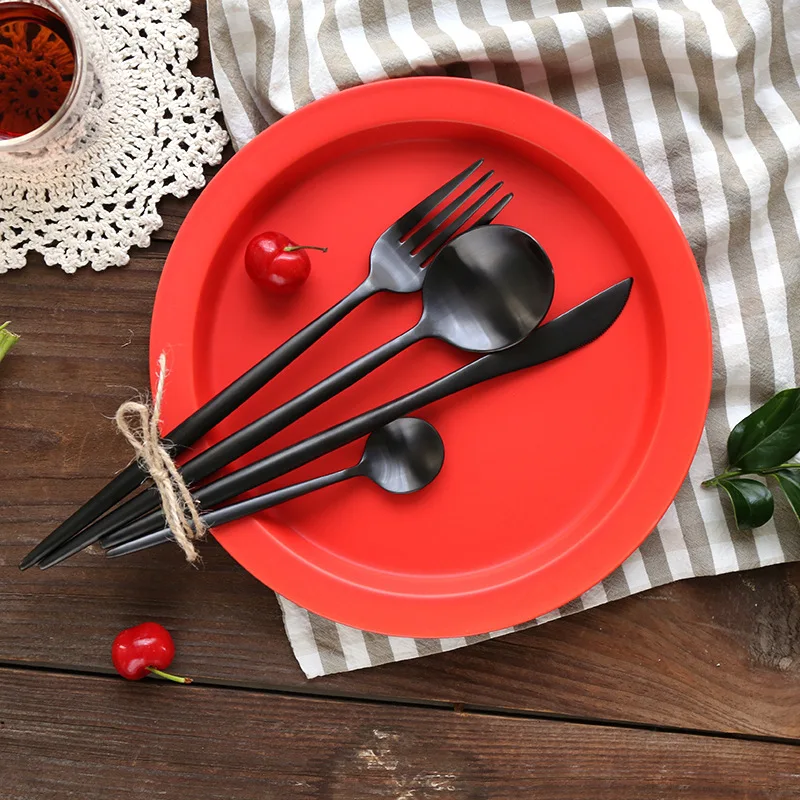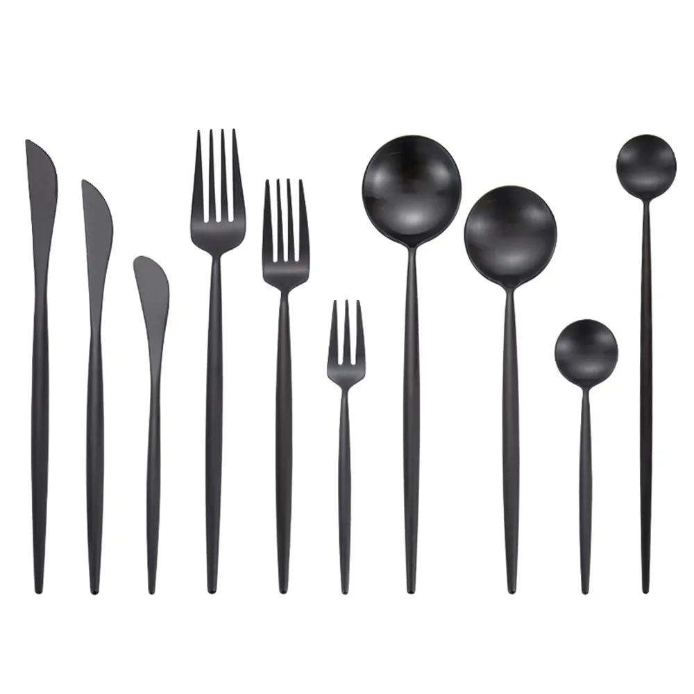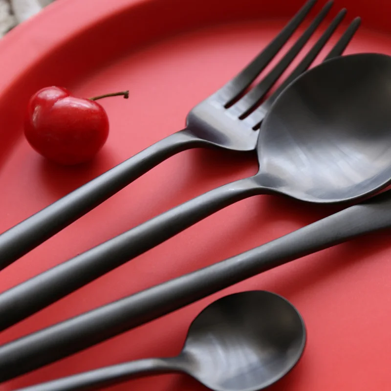 Набор столовых приборов из матовой черной стали, столовая посуда, вилка, десертная ложка, набор кухонных ножей, японские палочки для еды, Западный набор посуды