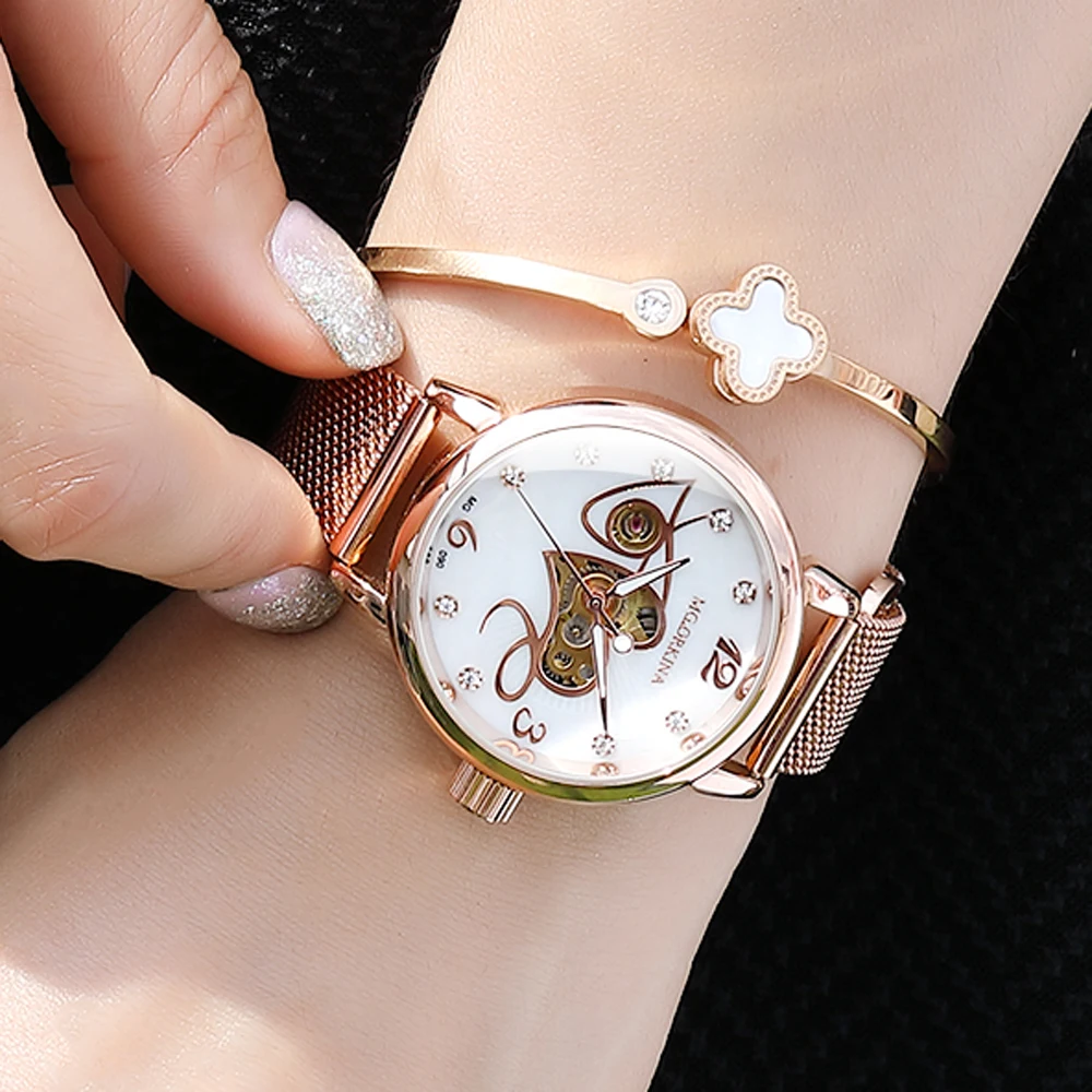 Часы женские под розовое золото, с автоподзаводом, 2020
