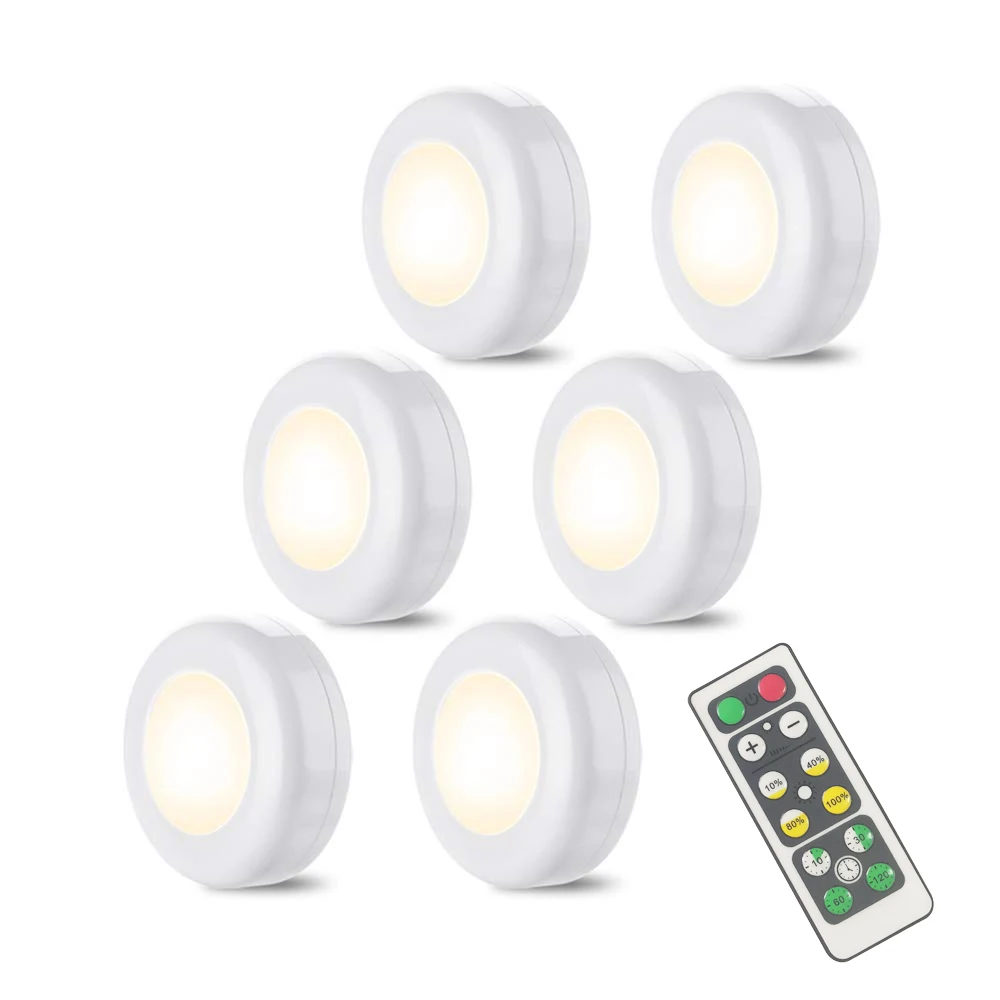 Диммируемые светодиодная подсветка под шкаф с дистанционным управлением на батарейках, светодиодные шкафы, COB шайба, светильник для шкаф для одежды ванная