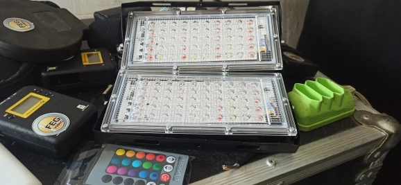 Красивый RGB, но из-за того, что зеленый и красный цвета производятся с краской, цвета не являются монохроматическими, настоящий зеленый не может быть сделан. Для наводнений это не является проблемой, эффективность высокая. Белый-холодный белый с широкополосным спектром. RF контроль работает нормально. Я доволен.