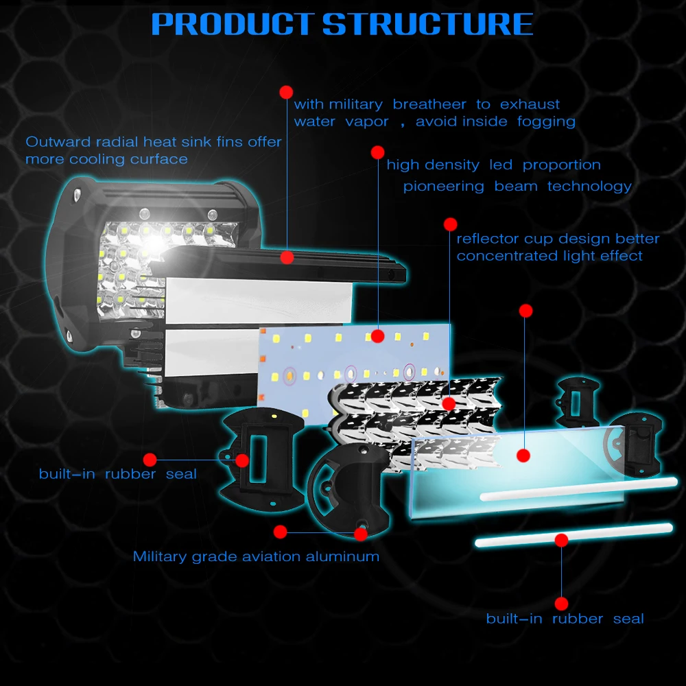 ApplicationBest used for Off-Road Vehicle Light, Work Light Bar