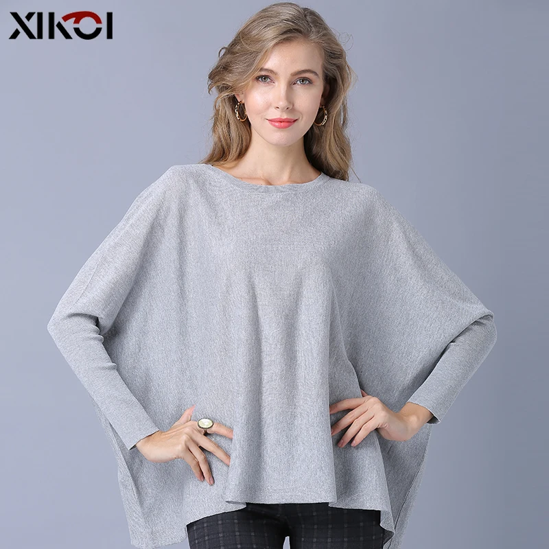 XIKOI Новый женский осенний однотонный сексуальный Свитер оверсайз женский прозрачный пуловер Модный пуловер женский свитер с рукавами «летучая мышь»