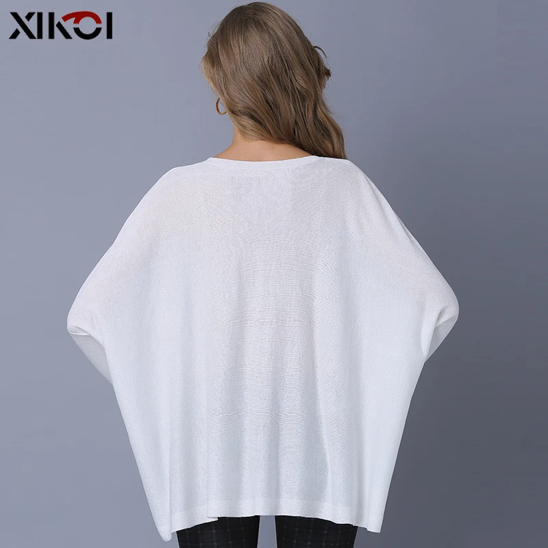 XIKOI Новый женский осенний однотонный сексуальный свитер большого размера, женский прозрачный пуловер, Модный женский свитер с рукавами летучая мышь белого цвета