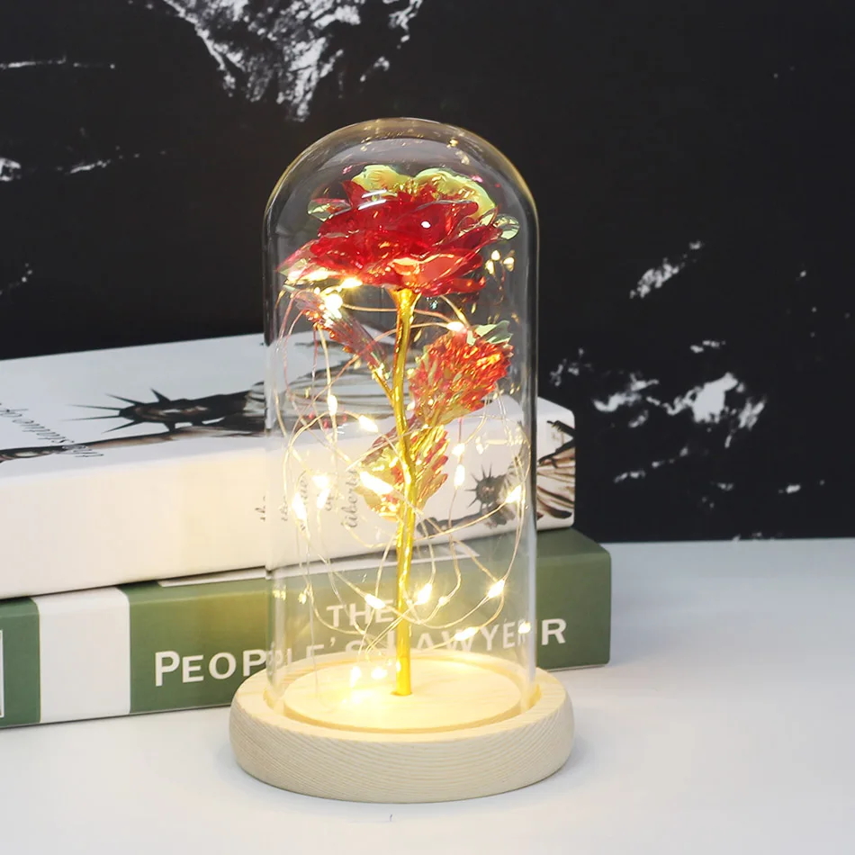 Красавица и Чудовище позолоченная красная роза со светодиодной подс...