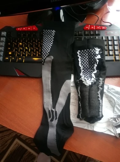 носки хорошие. но людям с 46. даже с 45 размером не советую покупать. будут давить в этом месте, на фото видно. думаю может после стирки там что-нибудь растянется)) либо после пару катаний в них. но передавиливает не хило, думаю ноги будут уставать.