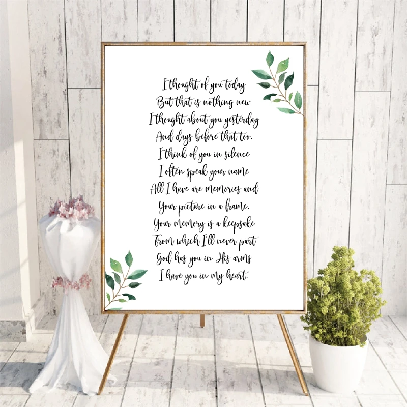 Свадебный памятный знак, печать, памятная поэма, плакат, я думал о вас сегодня, памятное искусство, холст, живопись, картина, свадебное украшение