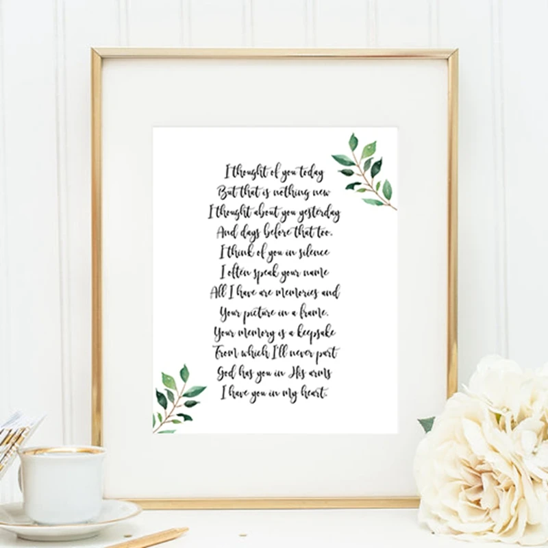 Свадебный Мемориальный знак Печать постер памяти я думал о вас сегодня память Искусство Холст Картина свадебное украшение