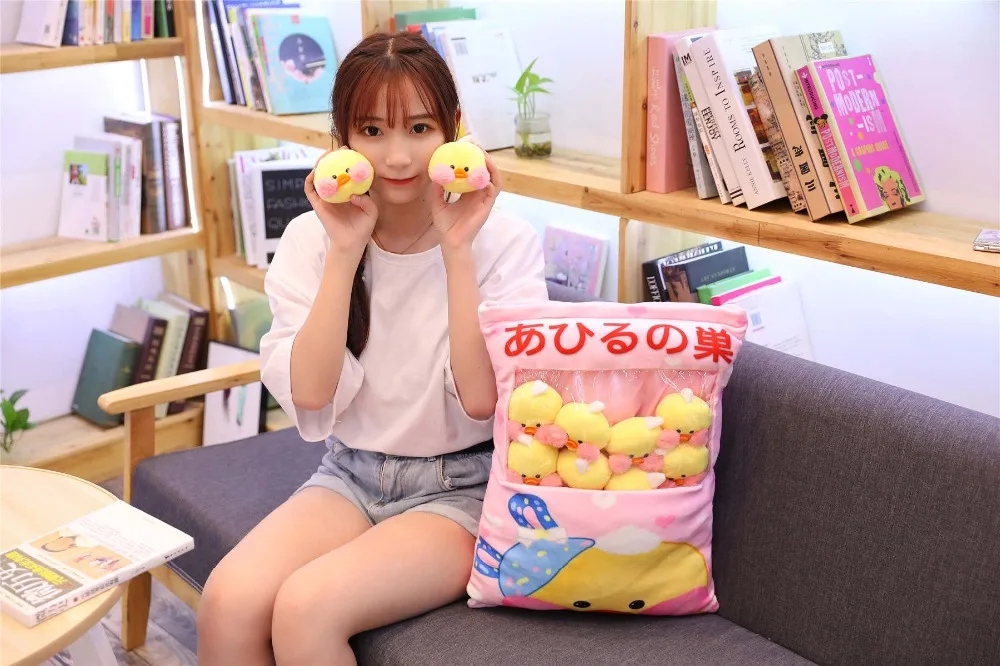 Kawaii Lalafanfan, плюшевая подушка, желтая утка, набивная кукла, сумка для снеков, утка, кукла, Kawaii, украшение для дивана, милый подарок для девочки