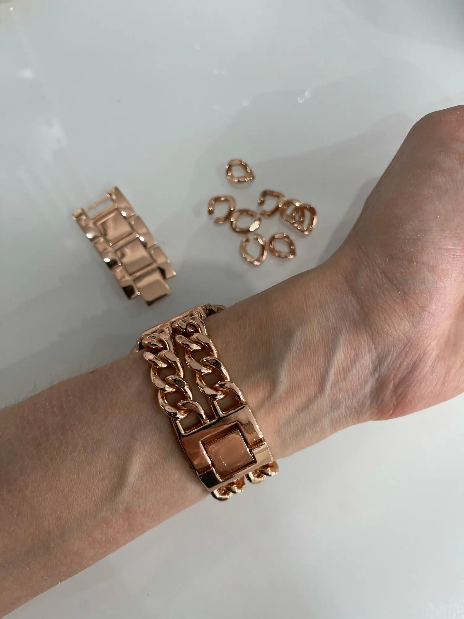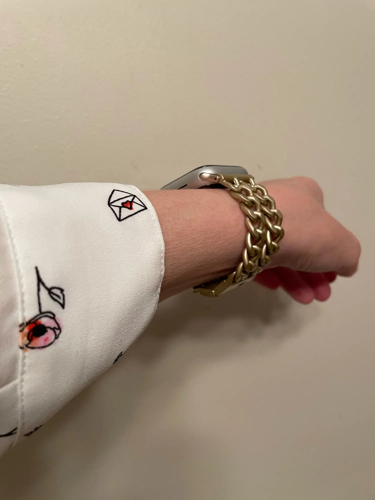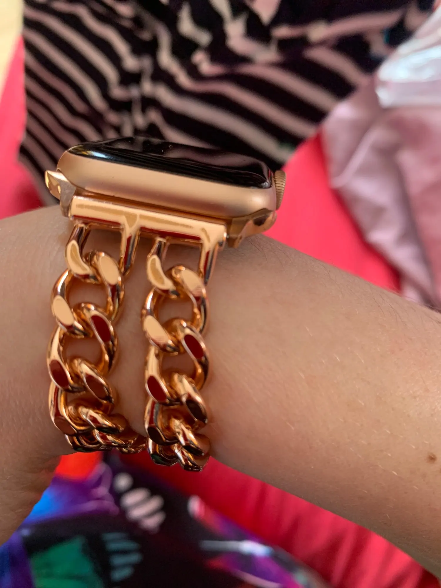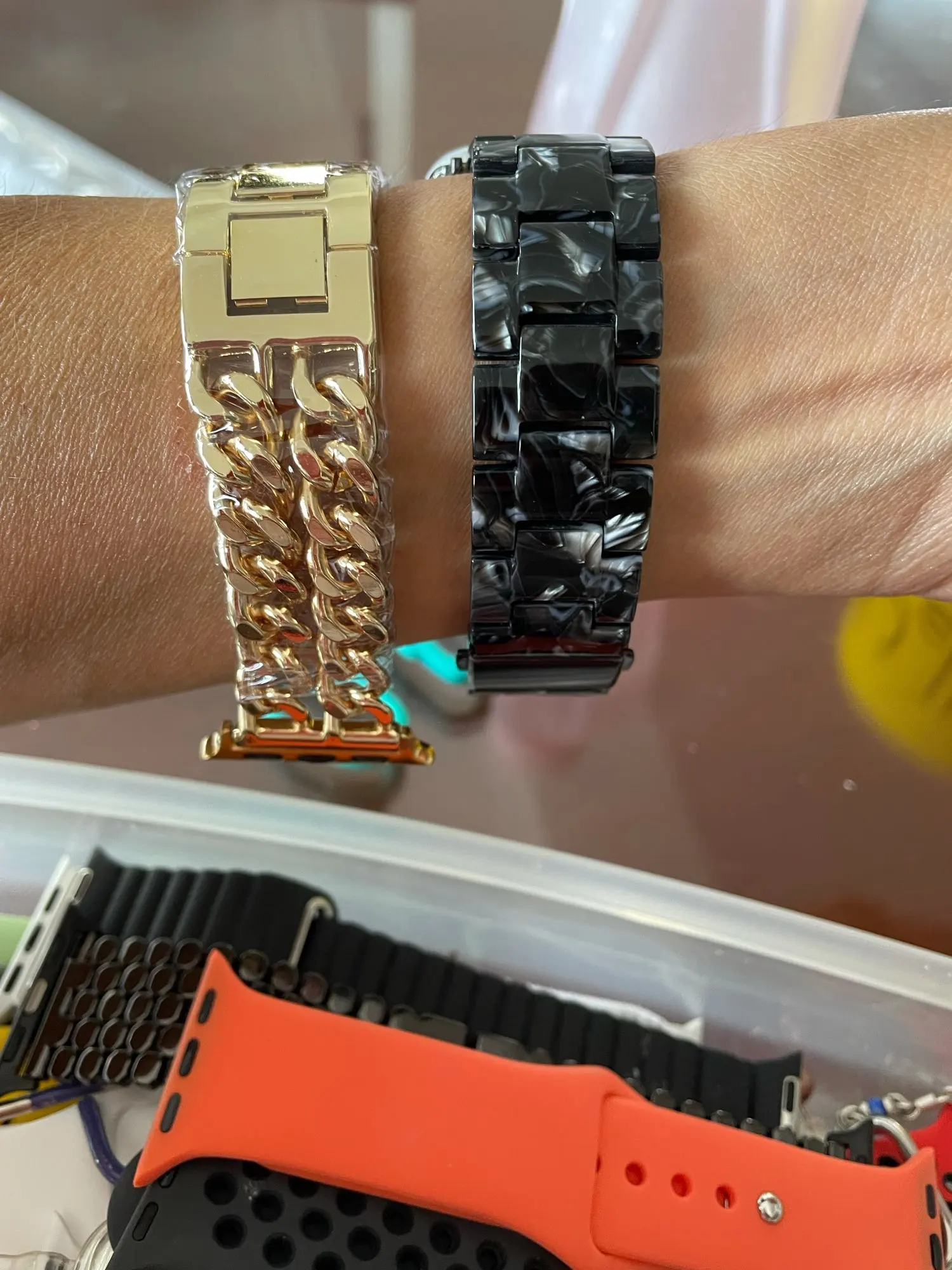 Очень крутой ремешок! Первый раз решила заказать через Пятерочку и мне заказ дошёл за 10 дней!!! (Свердловская область). Обычно такая мелочь почтой идёт по 2-3 месяца, буду сейчас всегда заказывать так. Муж весь вечер убирал мне звенья))) у меня просто ооооочень худая рука. Заказывала на iwatch 4 44mm. С каждой стороны убрали по 2 звена, щас сидит идеально!