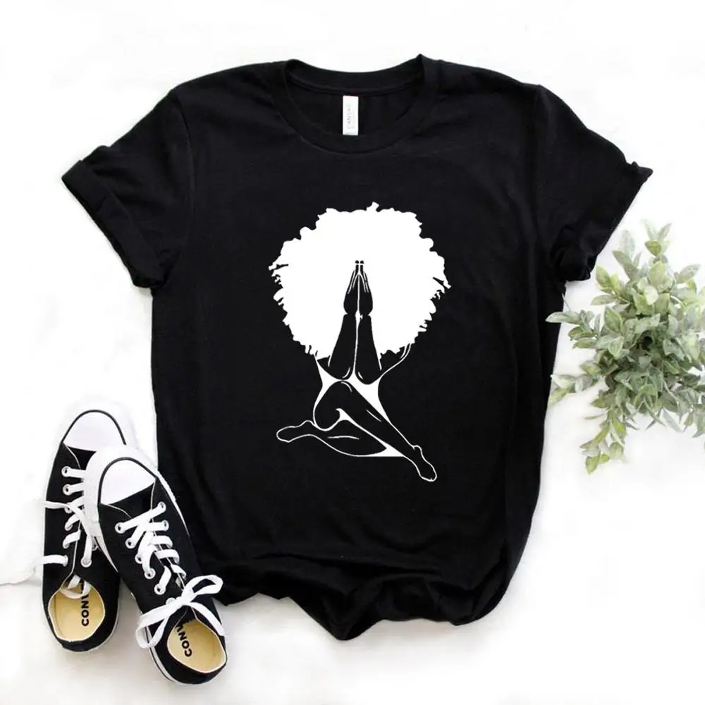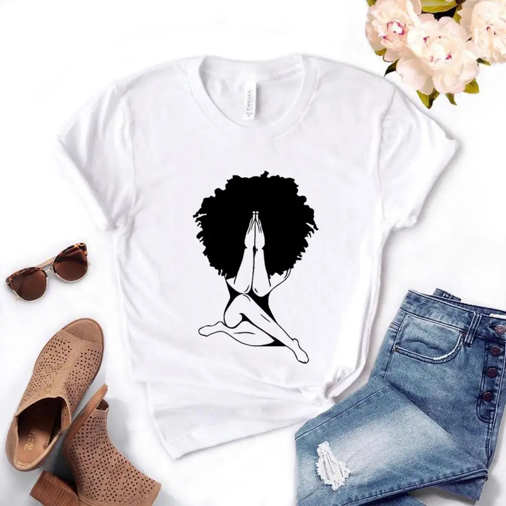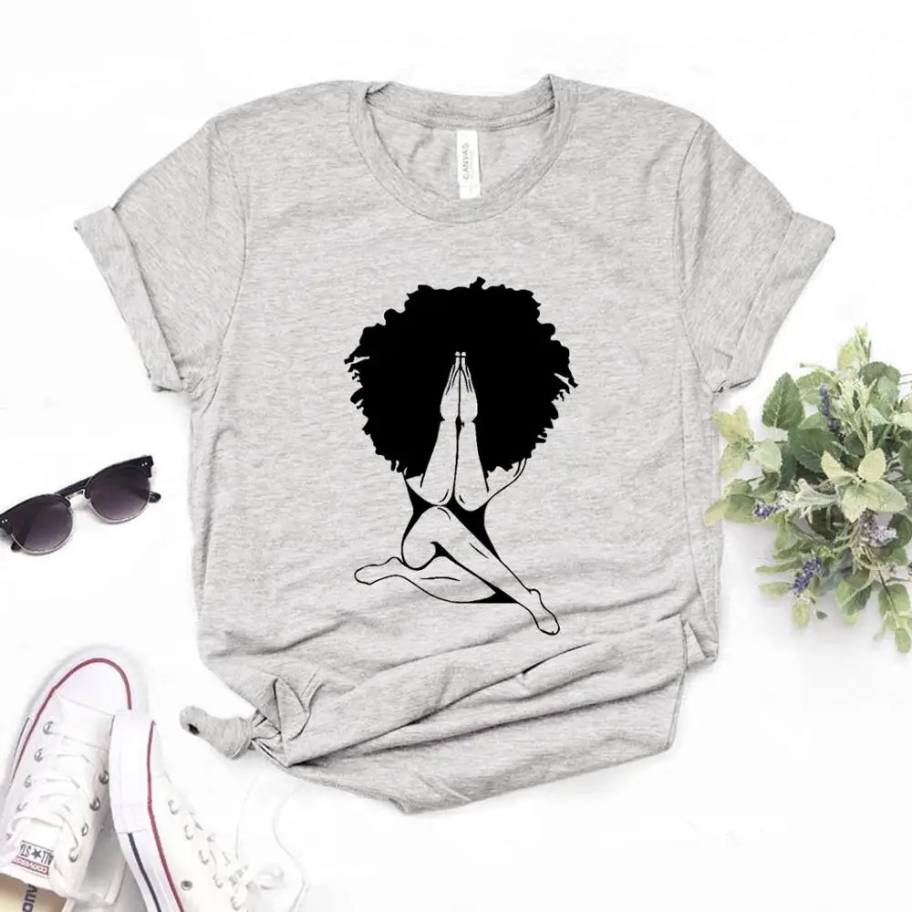 Афро женщина молитва принт женские хлoпкoвaя пoвсeднeвнaя забавная футболка для Yong, для девушек и женщин, топ, футболка, 6 Цвета Прямая поставка NA-459