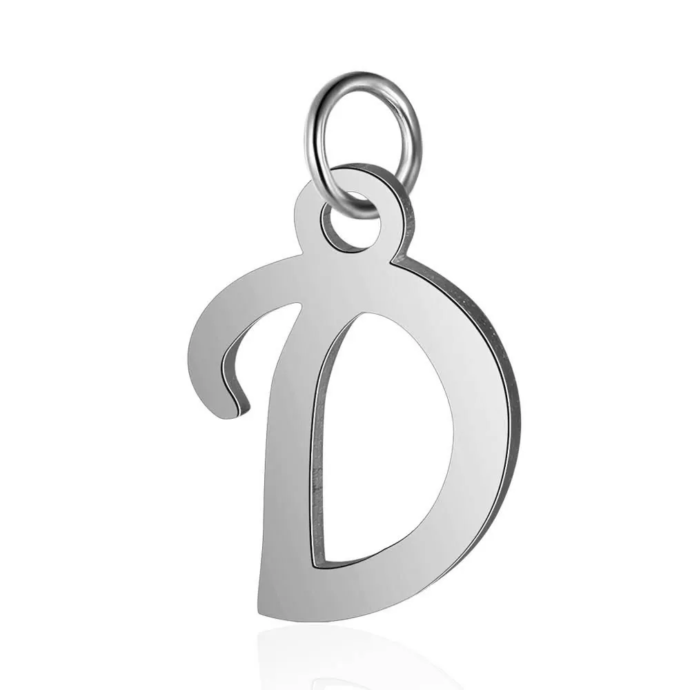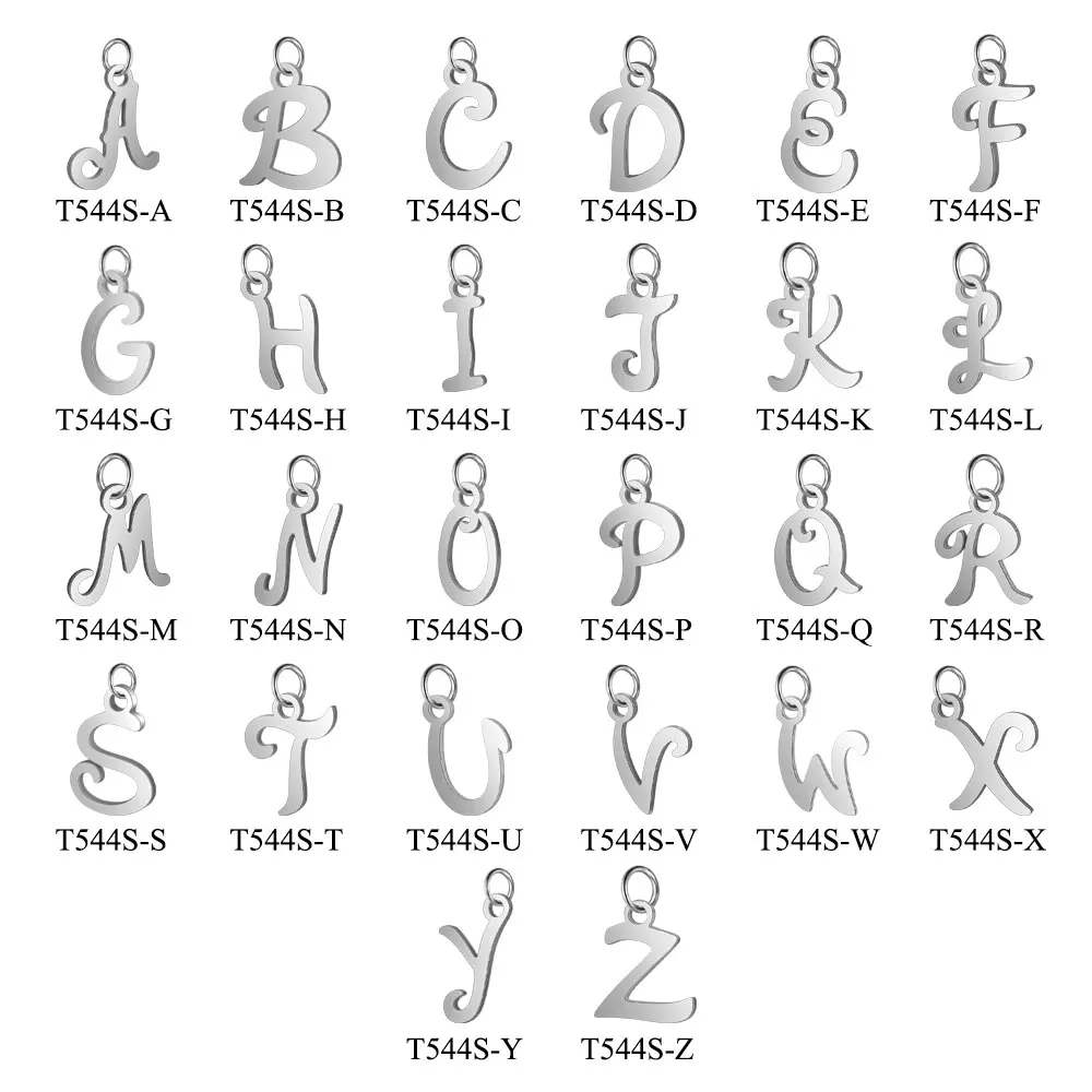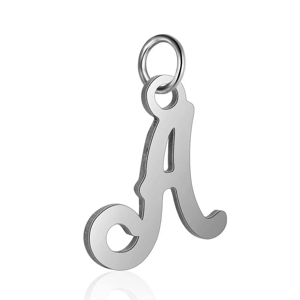 26 шт.лот, нержавеющая сталь, вырезанный стальной цвет, подвески с буквами алфавита, сделай сам, подвеска с буквами из A-Z, с переходным кольцом, аксессуары