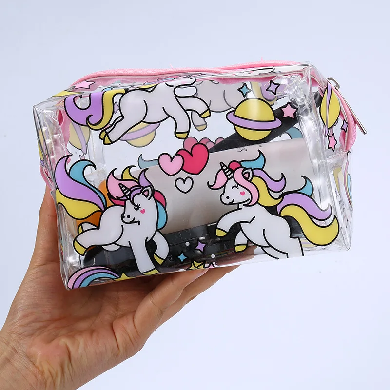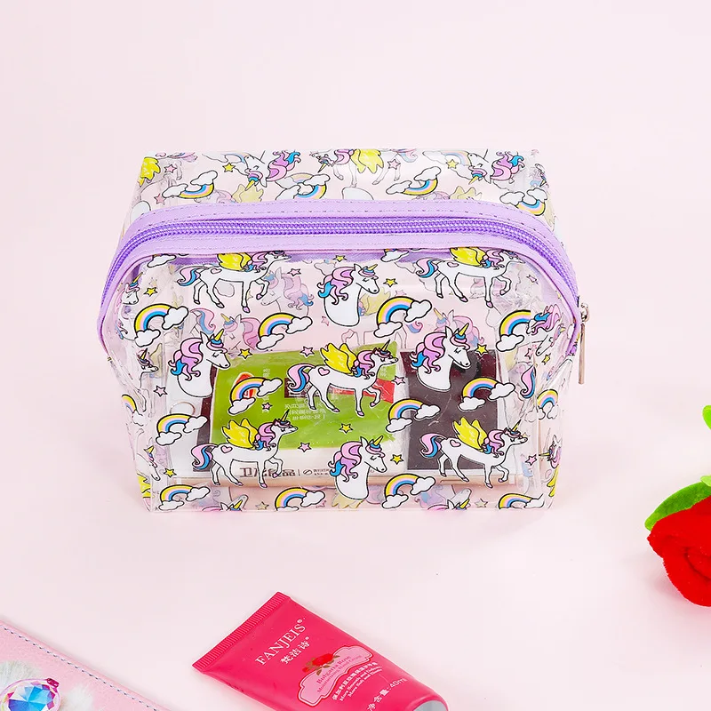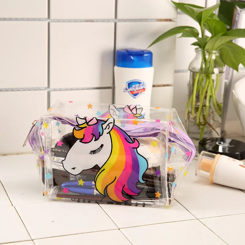 Прозрачная косметичка WULI SEVEN из ПВХ, органайзер для косметики с единорогом, Несессер для туалетных принадлежностей