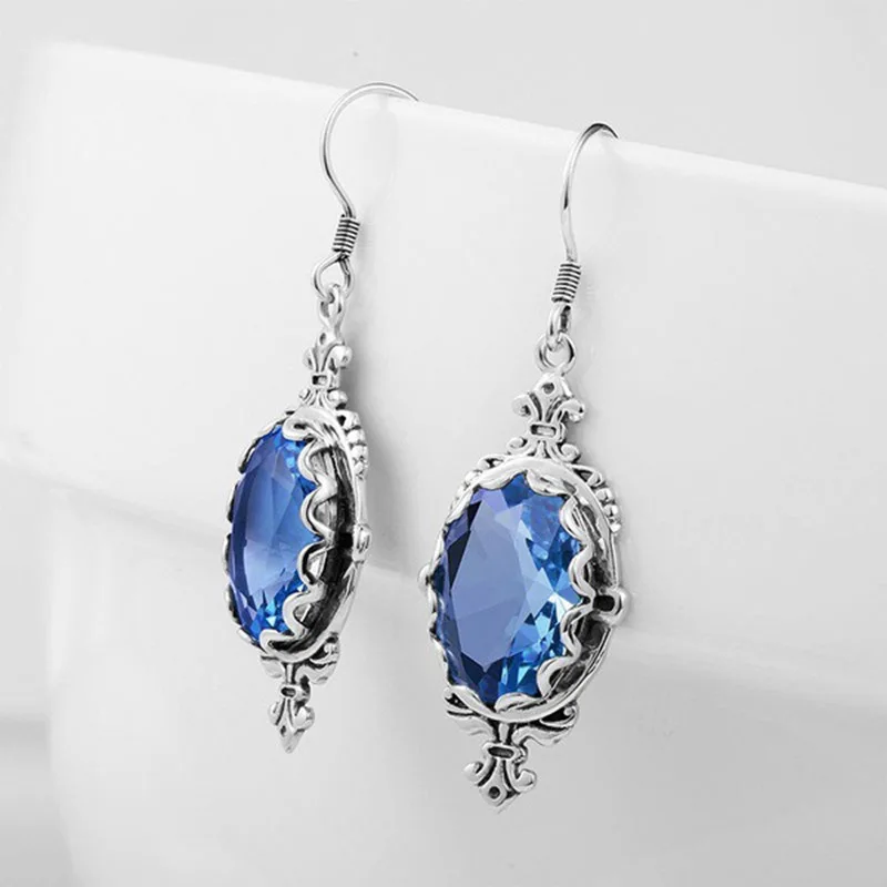 Женские Висячие серьги, инкрустированные голубыми камнями, каплевид...