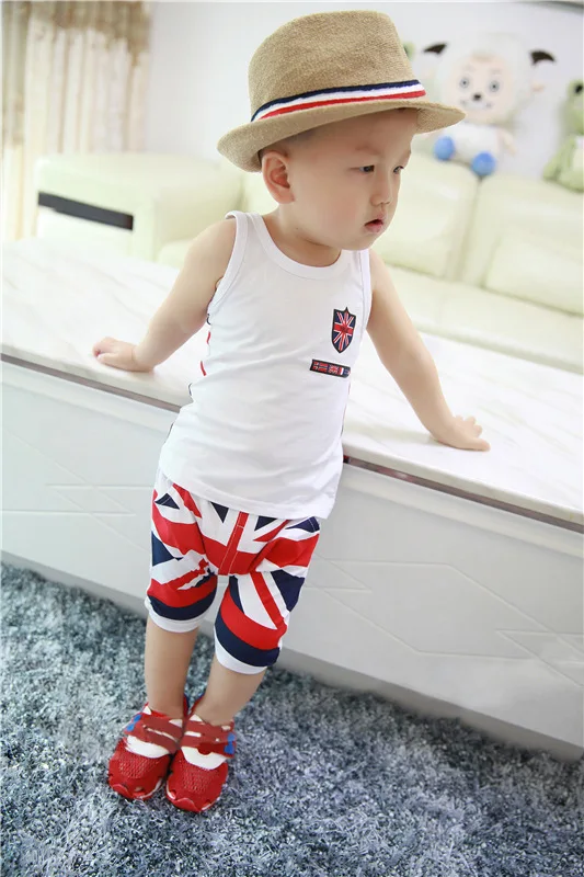 Костюм-Двойка для мальчиков и девочек, хлопковый, с мультяшным принтом, короткие штаны, 2 шт.компл.
