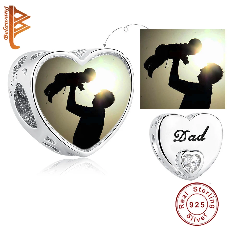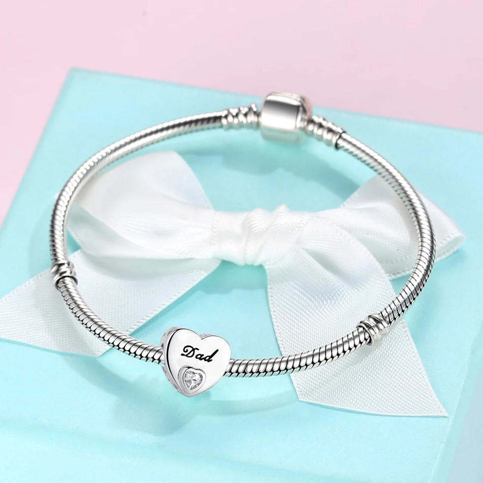 Новое поступление 925 пробы Серебряный Блестящий кубический циркон папа сердце очарование подходит браслет на заказ фото бисера DIY персонализированные ювелирные изделия