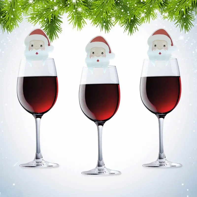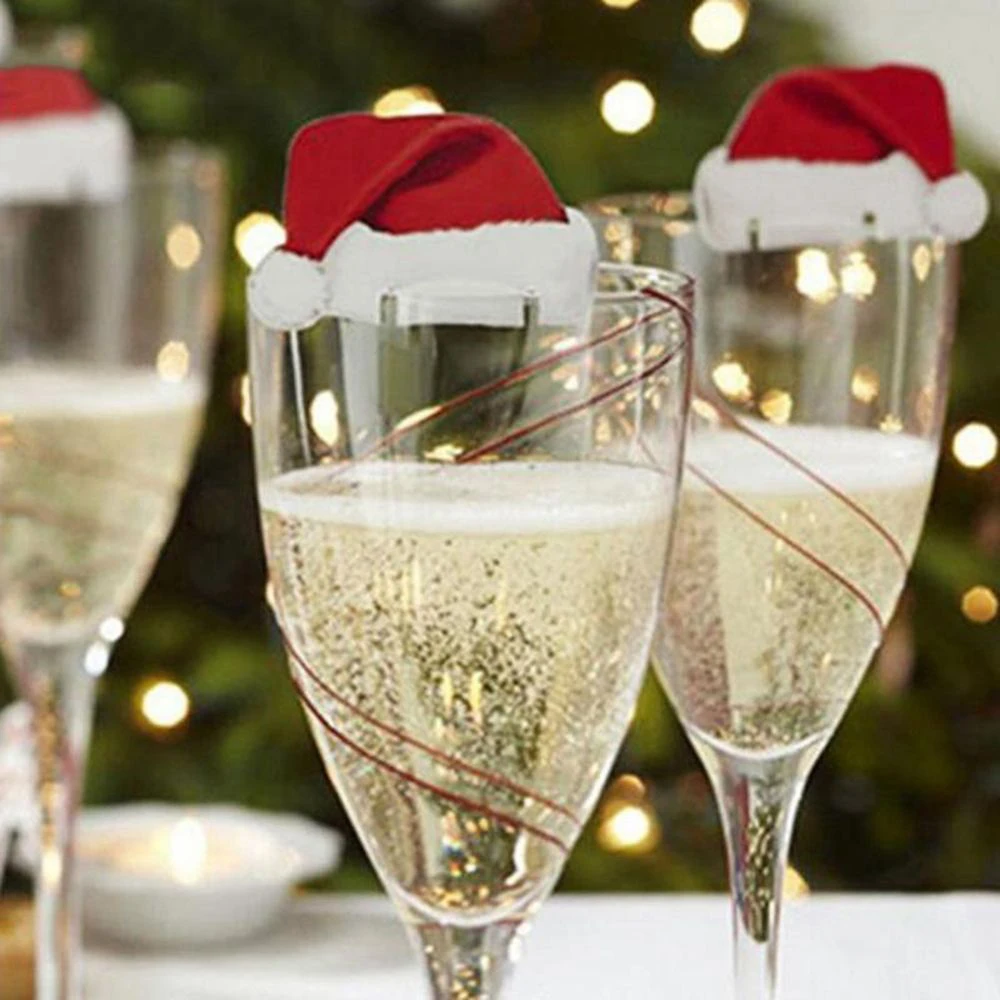 10 шт.лот рождественские чашки, открытки, украшения для домашнего стола, Рождественская шапка Санты, украшение для бокала вина, товары для новогодвечерние