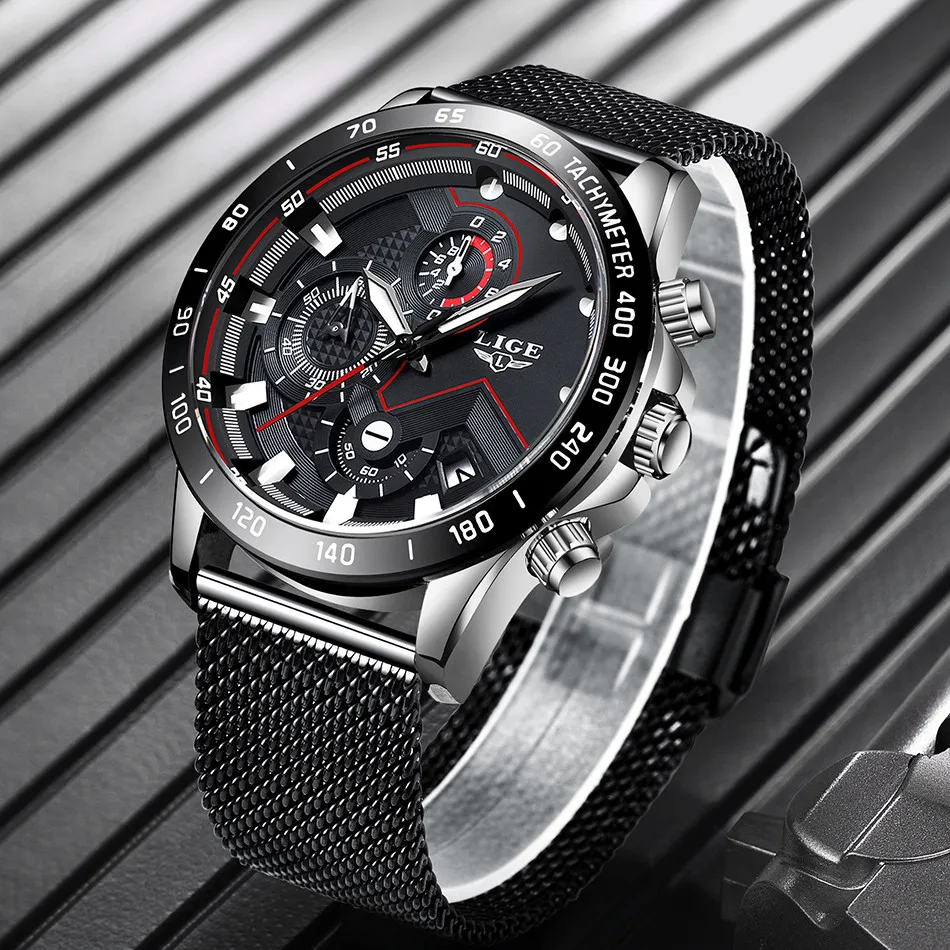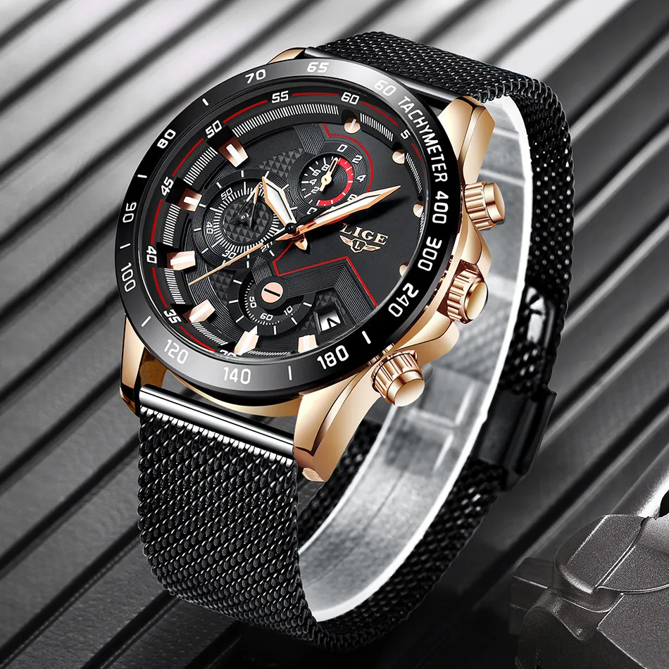 Часы наручные LIGE мужские с сетчатым браслетом, брендовые Роскошные водонепроницаемые повседневные Модные кварцевые золотистые, синие, 2019