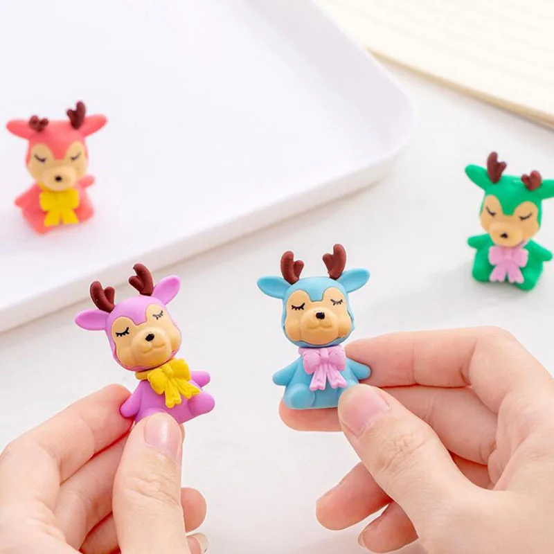 Кавайный ластик, 1 шт., милый Рождественский олень, ластик для карандашей, Креативные аксессуары, корейские канцелярские принадлежности, офисные и школьные принадлежности