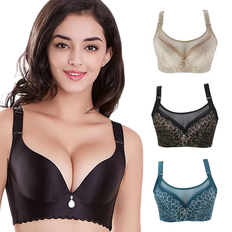 Женский кружевной бюстгальтер с чашками пуш-ап, большие размеры