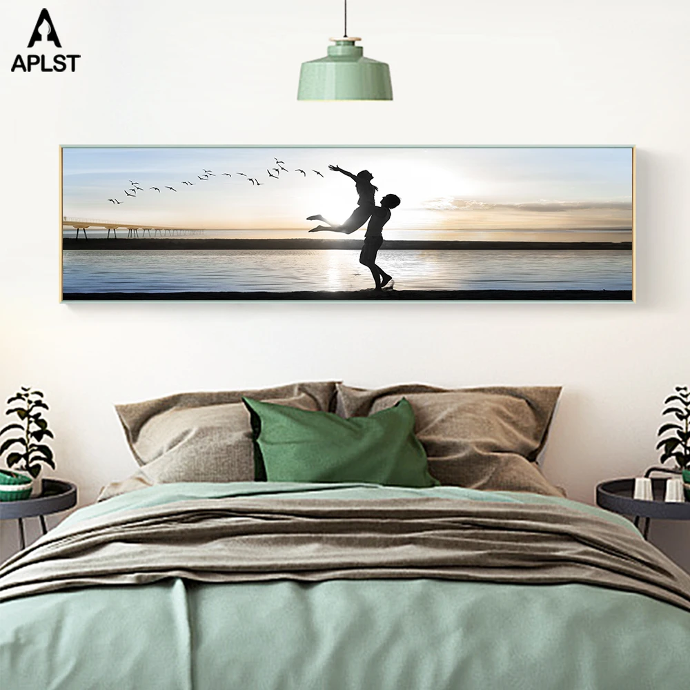Романтический Закат влюбленных пар, настенное искусство, морской пейзаж, холст, живопись и плакаты, большая картина для гостиной, спальни, Декор