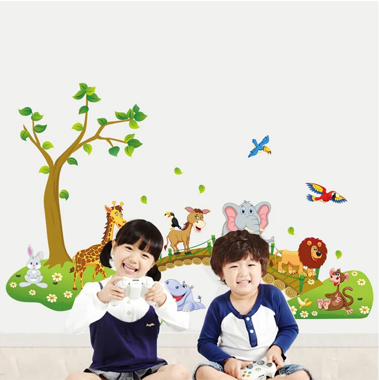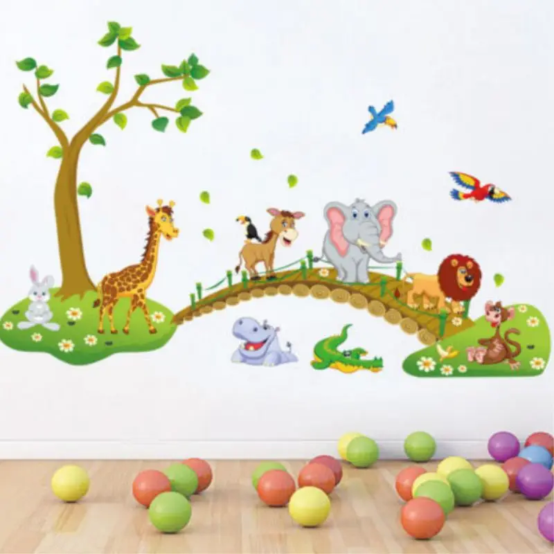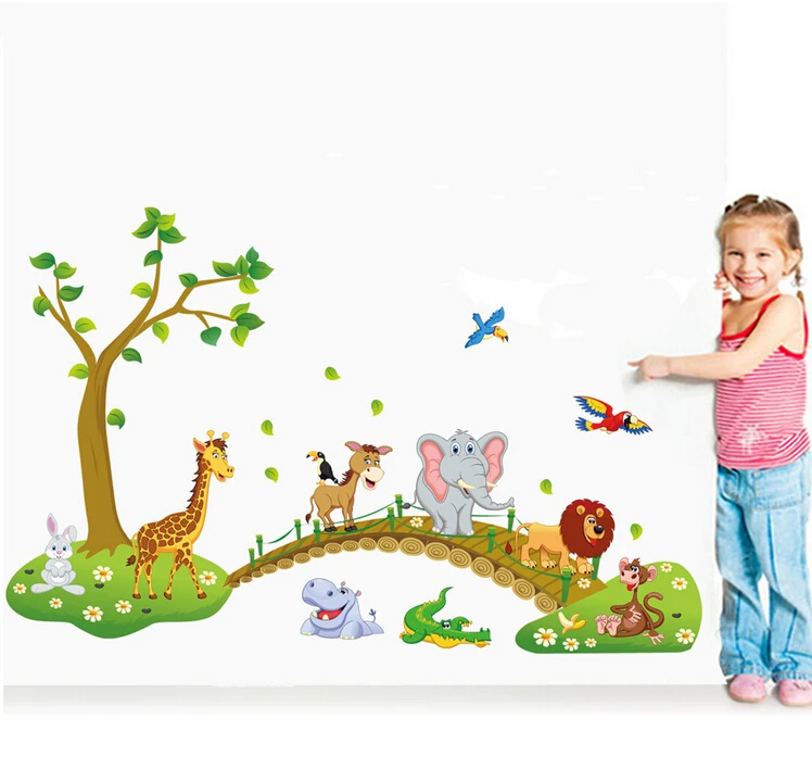 Милый стикер на стену для девочек в виде животных, джунглей, леса, ...