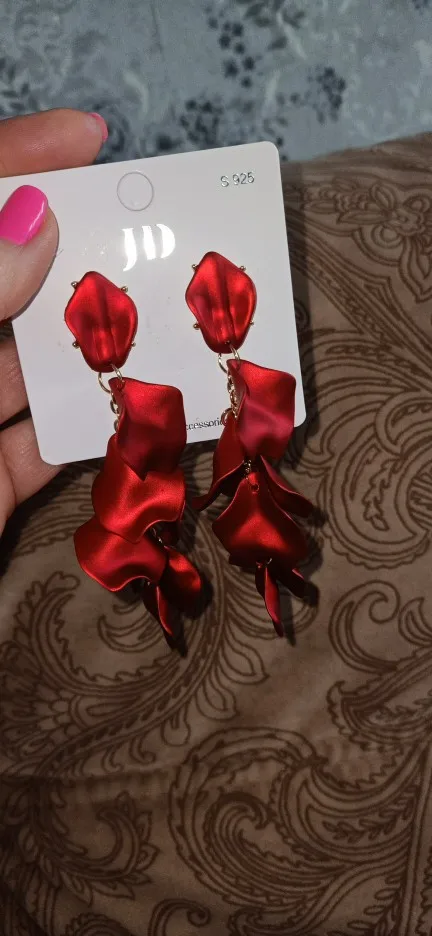 красивые серьги, подойдут к любому лицу, и к крупному и к мелкому. красный цвет очень красивый. Пришли быстро. Товар и продавца рекомендую.