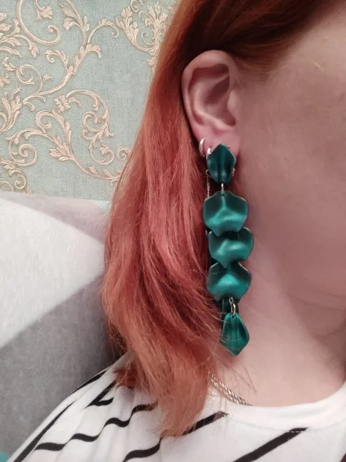 Серьги красивые, легкие, у меня все еще есть красный и жду темно-синего цвета, доставка через 3 недели