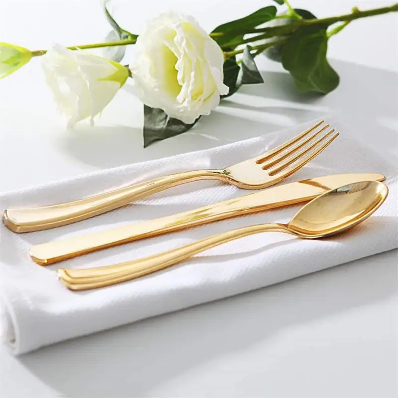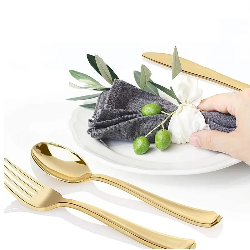 Набор одноразовых золотых столовых приборов, 75-300 шт.