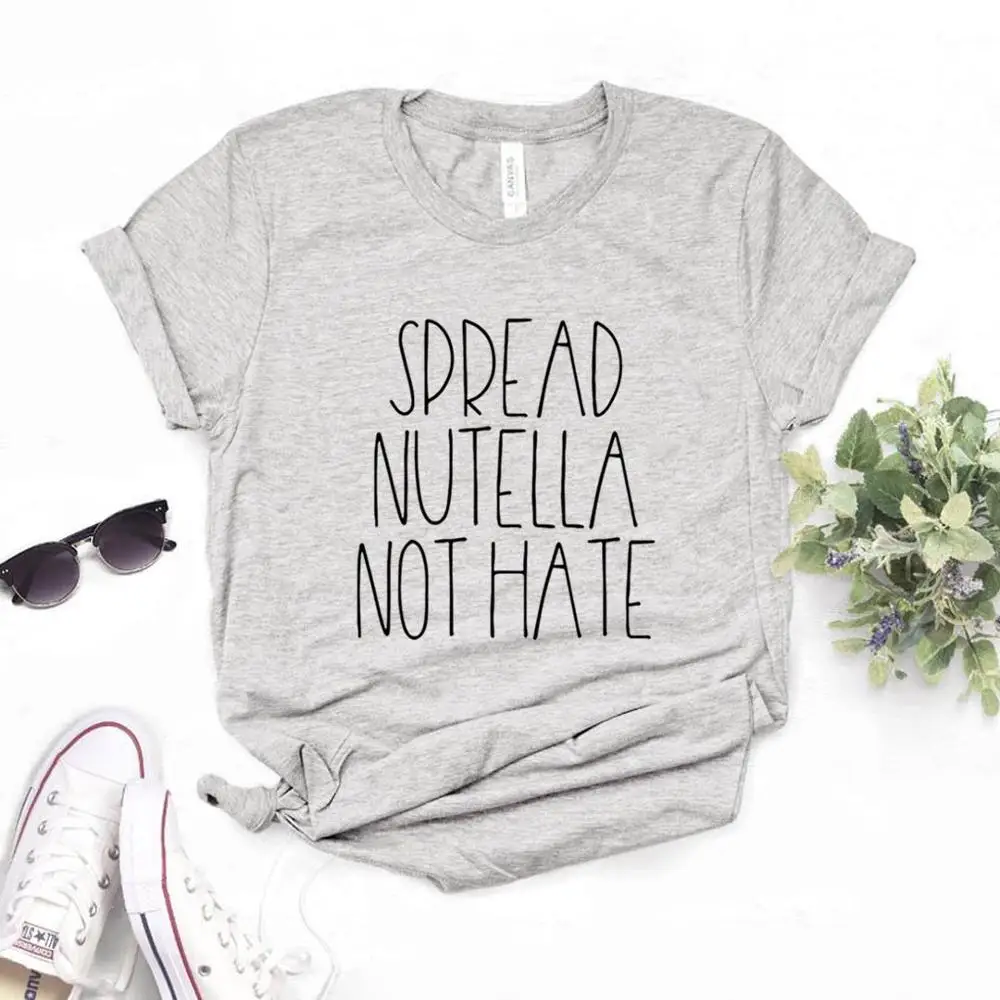 Распространения Nutella не ненавидят для женщин футболки хлопок повседневное забавная Футболка для леди верхний тройник битник 6 Цвет Прямая поставка NA-500