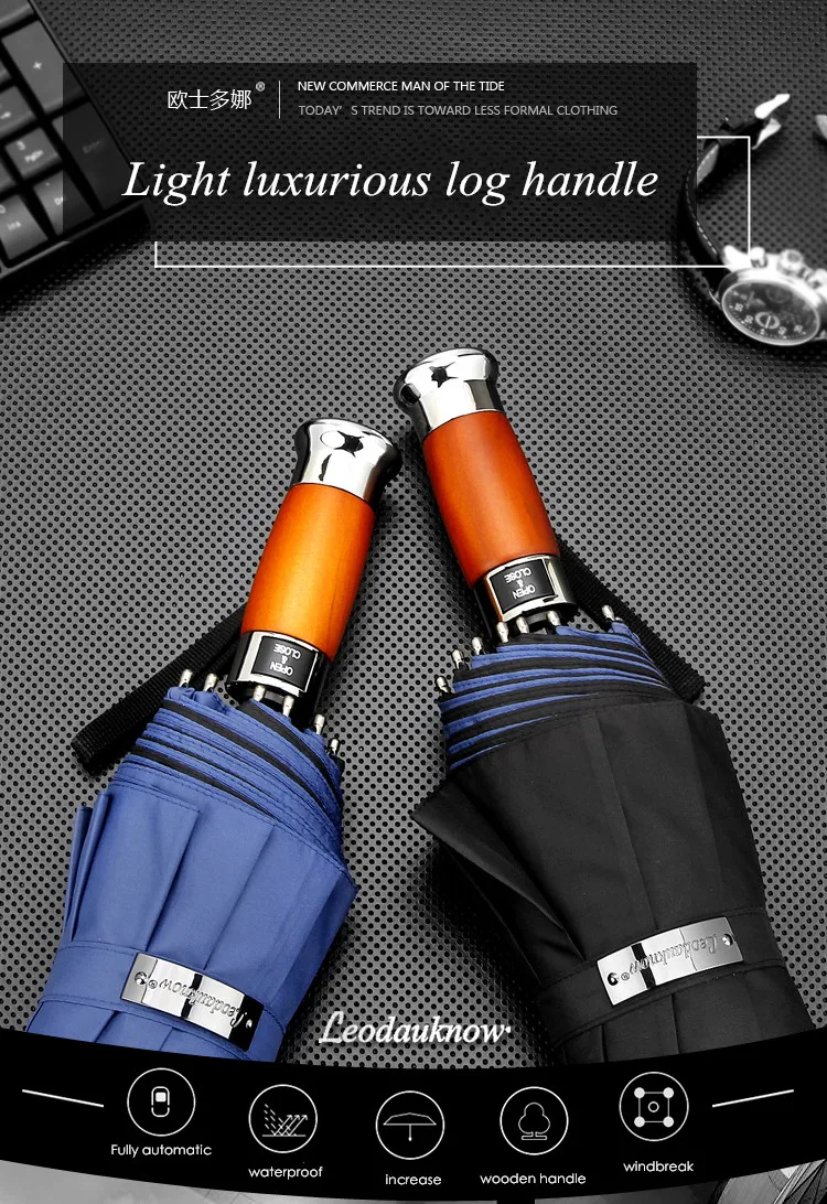 Полностью автоматический складной большой роскошный автомобильный Зонт Leodauknow с защитой от ветра и УФ-лучей зонт для мужчин от солнца и дождя