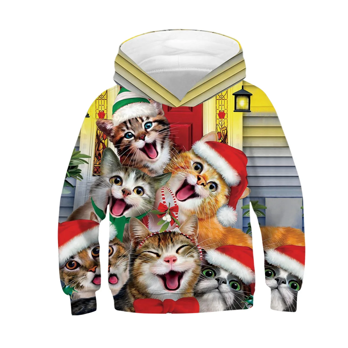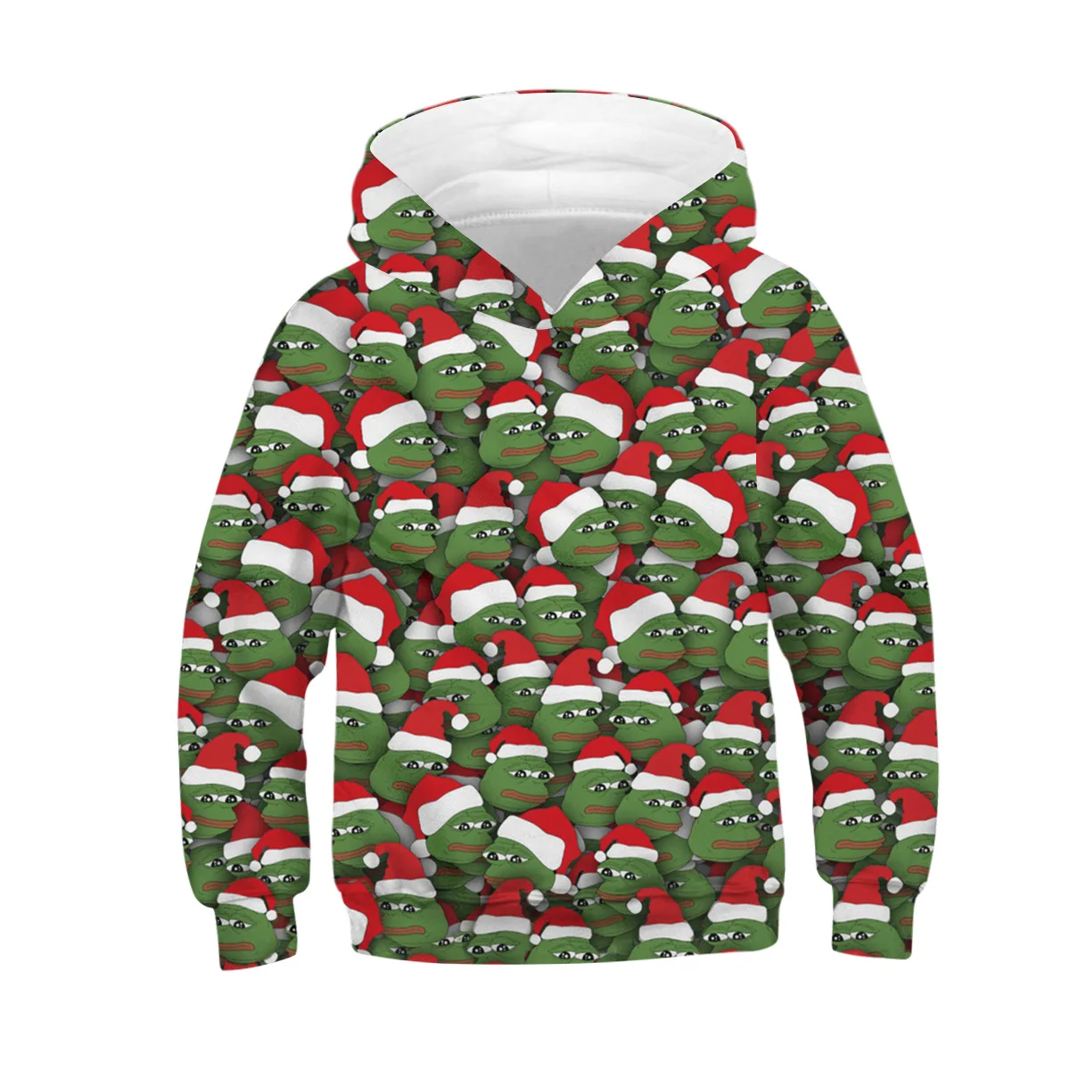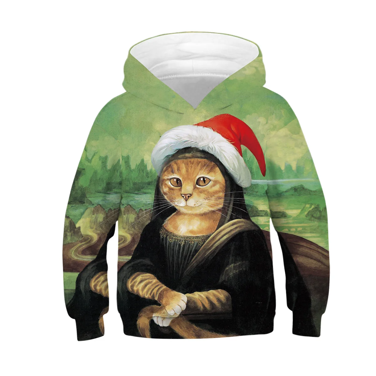 Свитшот с капюшоном для мальчиков и девочек, в рождественском стиле, с 3D-принтом, с изображением Санта-Клауса