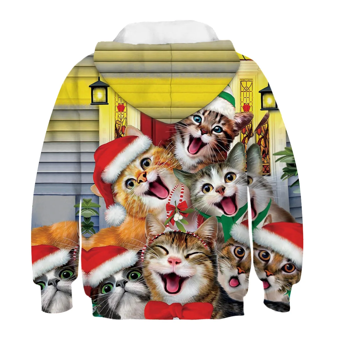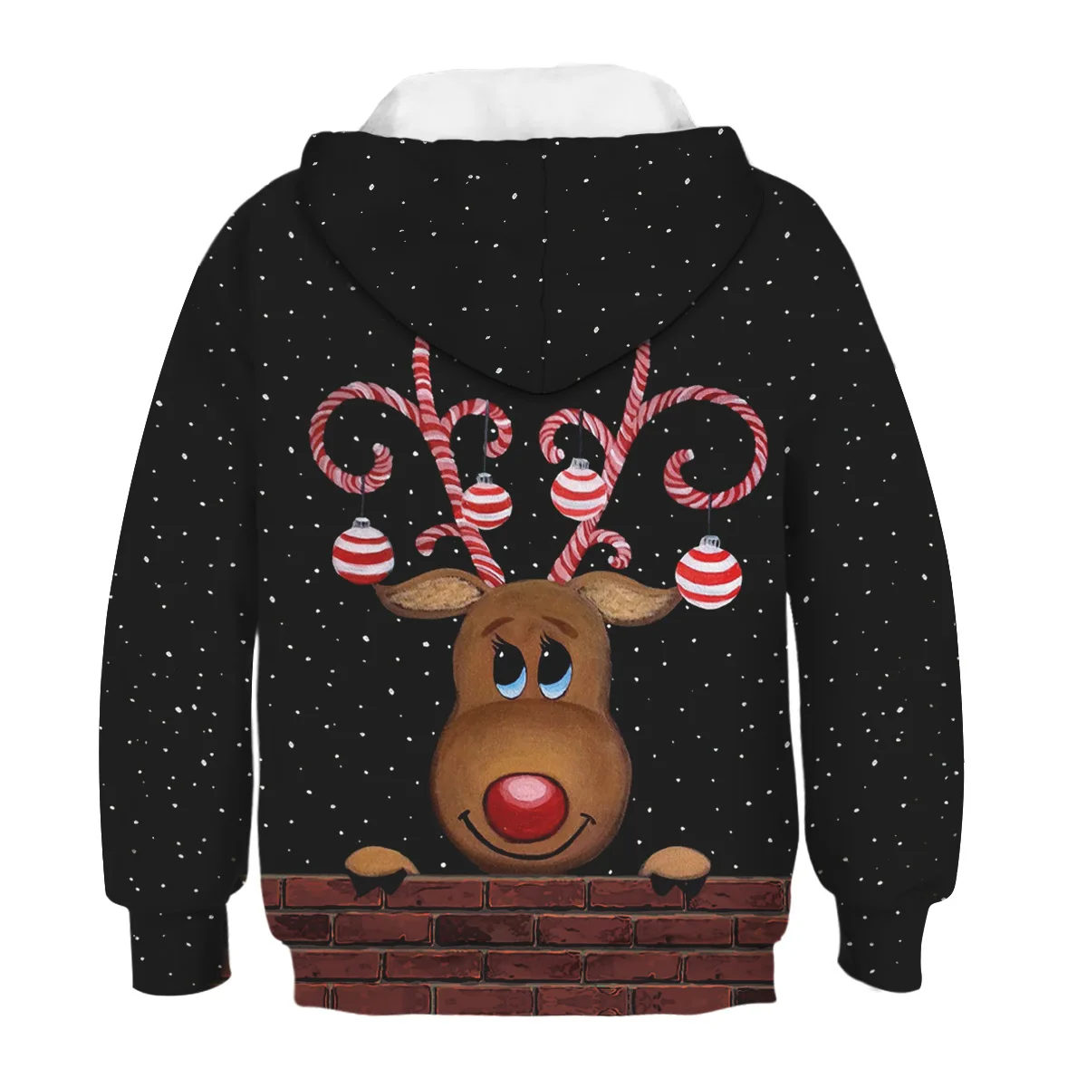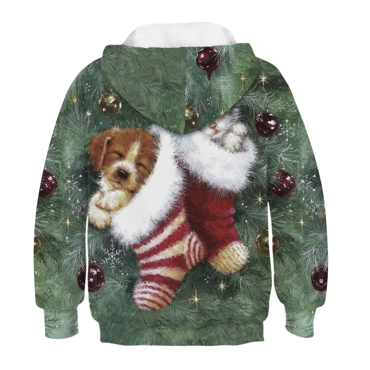 Свитшот с капюшоном для мальчиков и девочек, в рождественском стиле, с 3D-принтом, с изображением Санта-Клауса