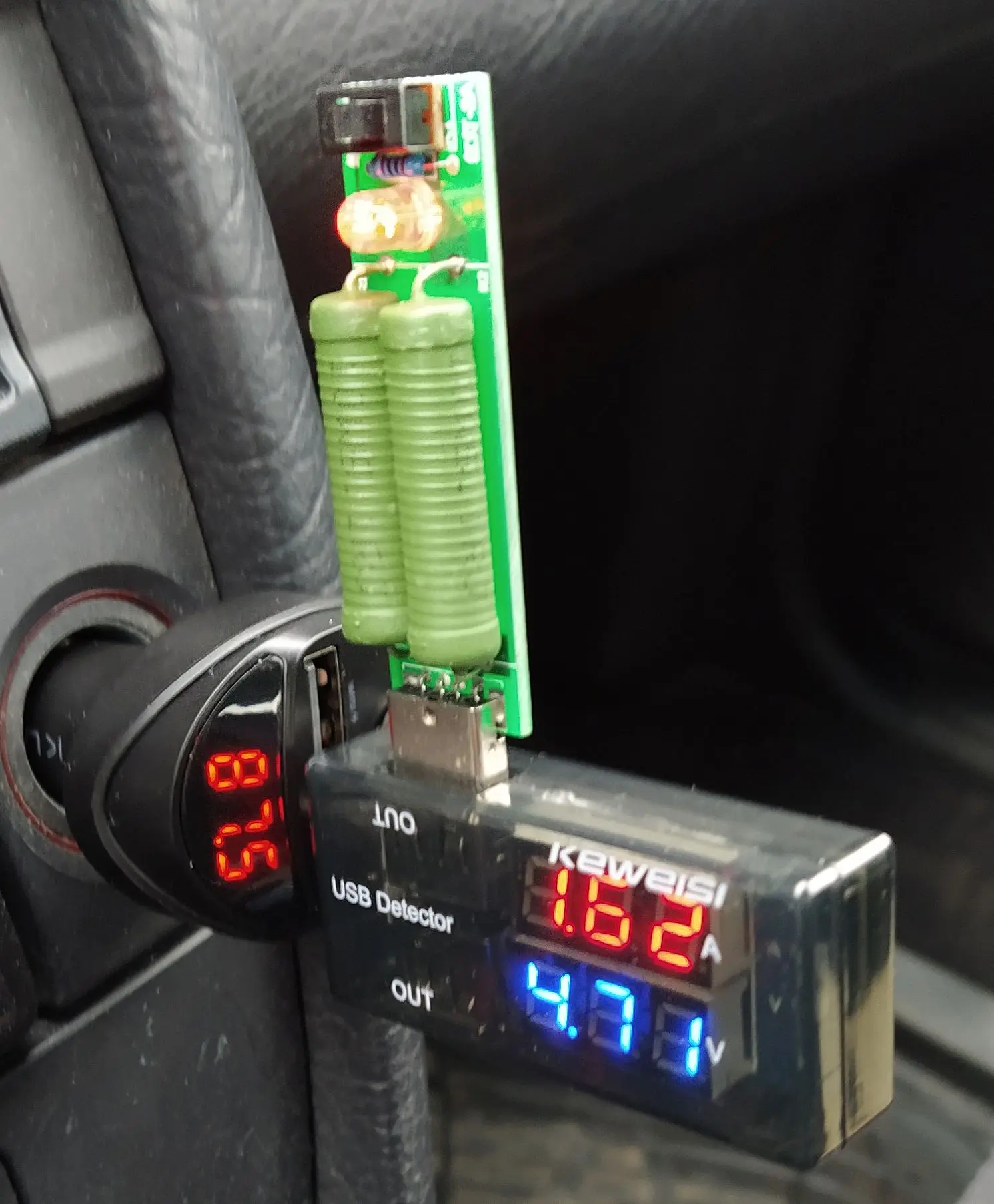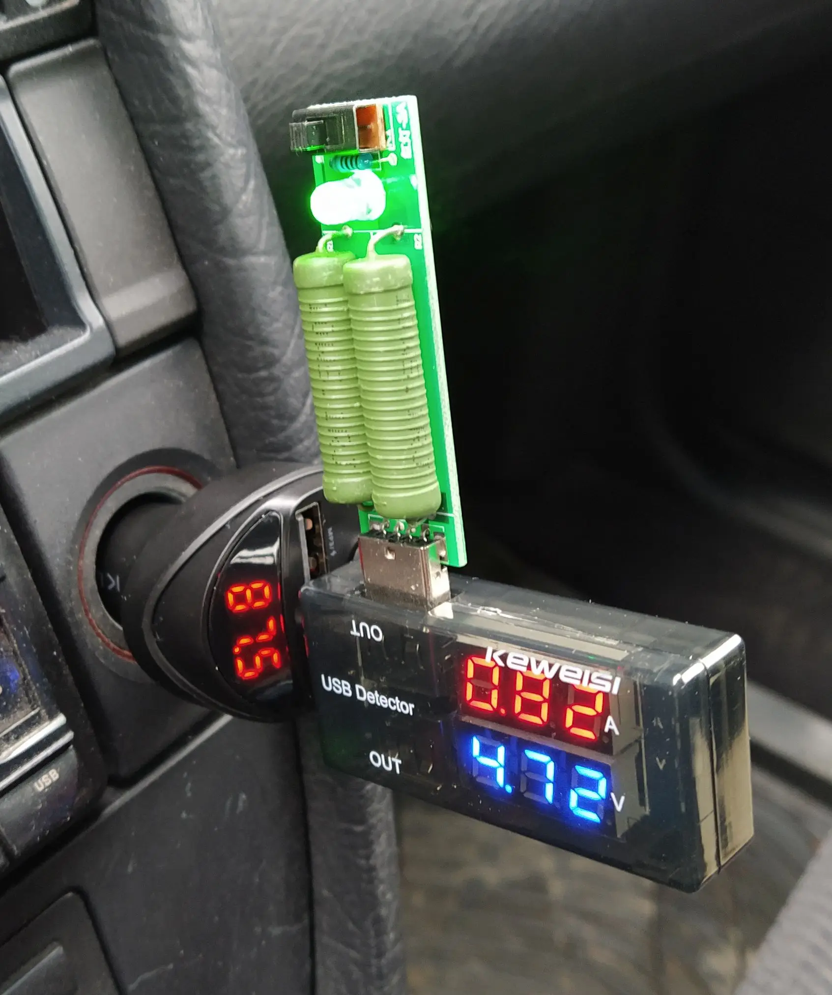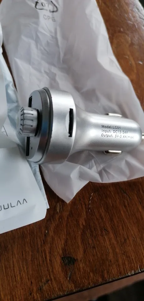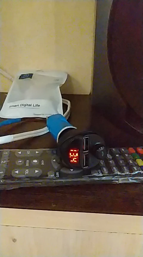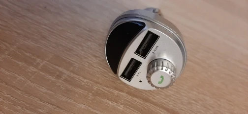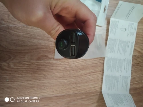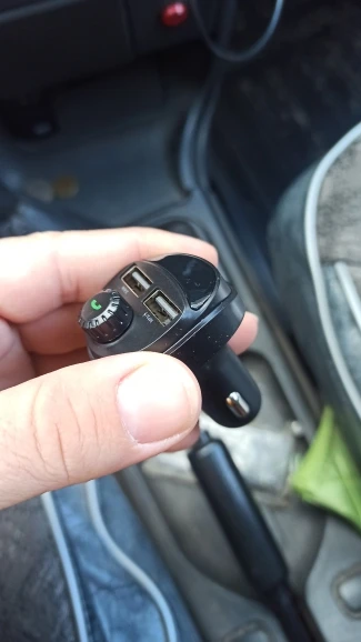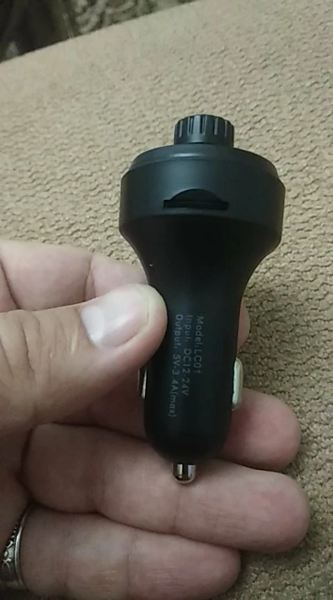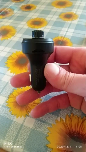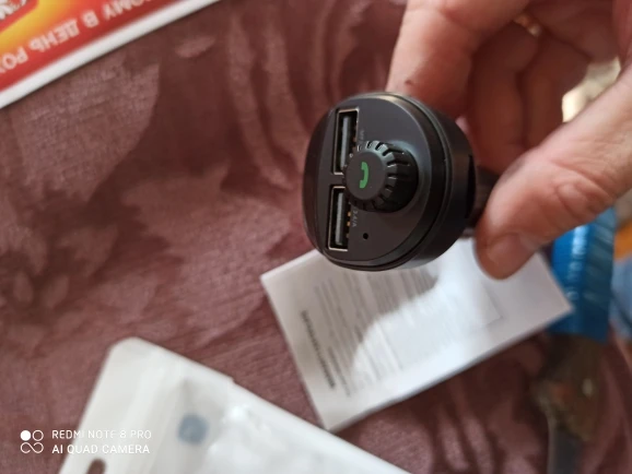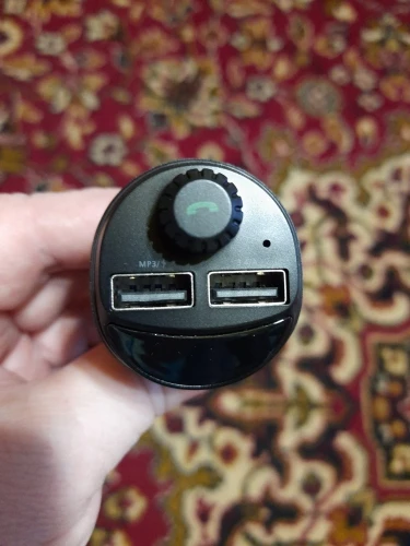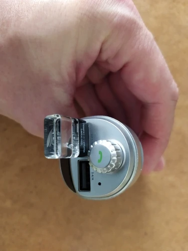 Девайс оказался по размеру чуть меньше, чем я ожидал. Проверил в режиме трансмиттера с флеш-карты - работает. В режиме трансмиттера с телефона по bluetooth - работает. Проверил в режиме hands-free - работает. Переговорил . Меня абонент слышал. Я его - тоже. Зарядку проверял только на слоте 3.4 А. Без нагрузки девайс выдавал- 4.89 В. С нагрузкой на 1 А напряжение упало до 4.72 В, ток составил 0.82А. С нагрузкой на 2 А напряжение составило 4.71 В, ток составил 1.62 А.