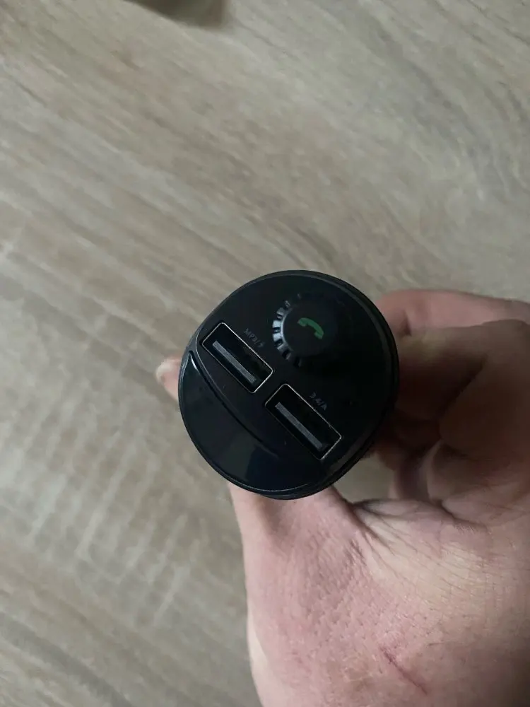 Товар пришёл, упаковка отличная, все работает : на зарядное выдаёт 3,3А. блютуз ловит, нажатием круглой кнопки отключается, микро флешку читает, большая тоже работает. Настраивается на частоту нажатием кнопки и поваротом до нужной частоты. Описание соответствует товару.